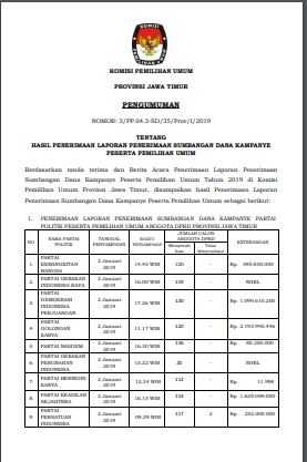 Surabaya, jatim.kpu.go.id- Seluruh peserta pemilu telah menyampaikan Laporan Penerimaan Sumbangan Dana Kampanye (LPSDK) kepada Komisi Pemilihan Umum Jawa Timur (KPU Jatim) kemarin (Rabu, 2/1). Dan hari ini, Kamis (3/1), giliran KPU Jatim mengumumkan kepada publik. Peserta pemilu yang menyampaikan LPSDK ke KPU Provinsi ini terdiri dari 16 partai politik di tingkat provinsi, tim kampanye Capres dan Cawapres di tingkat provinsi serta 28 Calon Perseorangan (DPD). Divisi Hukum dan Pengawasan KPU Jatim, Insan Qoriawan menjelaskan LPSDK merupakan laporan penerimaan sumbangan dana kampanye yang dibukukan sejak awal kampanye (23 September 2018) sampai dengan sehari sebelum dilaporkan (1 Januari 2019). “Berdasarkan LPSDK yang disampaikan ke KPU Jatim pada tanggal 2 Januari 2019, ada 5 dari 16 partai politik tidak menerima sumbangan dana kampanye. Yakni, partai Gerindra, partai Garuda, PPP, PAN, partai Hanura,” jelas Insan (3/1/2019). Selanjutnya, menurut Insan, PKB menerima sumbangan dana kampanye sebesar 390.850.000, PDI Perjuangan sebesar Rp. 1.099.610.200,00; partai Golkar sebesar Rp. 2.193.995.446,00; partai Nasdem sebesar Rp. 80.250.000,00; partai Berkarya sebesar Rp. 11.998,00; PKS sebesar Rp. 1.629.089.000,00; partai Perindo sebesar Rp. 252.000.000,00; PSI sebesar Rp. 390.476.600,00; partai Demokrat sebesar Rp. 1.157.000.000,00; PBB sebesar Rp. 100.000.000,00; serta PKPI sebesar Rp. 64.129.933,00. Sementara itu untuk Calon Perseorangan yang tidak menerima sumbangan dana kampanye ada 9 orang yaitu, Alfa Isnaeni, A Syaiful Ismail, Evi Zainal Abidin, Fatihul Faizun, Imam Khodri, Misbahul Munir, Mohammad Trijanto, Sonhadji Zainudin, dan Supriasto. “Untuk A. Agus Patminto menerima sumbangan sebesar Rp. 45.000.000,00; AA La Nyalla Mahmud Mattalitti sebesar Rp. 450.227.002,00; Abdul Qadir Amir Hartono sebesar Rp.150.000.000; Achmad Nurul Ilmi sebesar Rp. 29.800.000,00; Achmad Rusyad Manfaluti Rp.4.000.000,00; Adilla Azis sebesar Rp. 20.000.000,00; Ahmad Nawardi sebesar Rp.25.000.000,00; Andi Yuwono sebesar Rp. 1.906,00; Enrico Whenry Rizky Tambunan sebesar Rp. 21.508.820,00; Fairouz Huda sebesar Rp. 5.000.000,00; Harbiah Salahuddin sebesar Rp 50.000.000,00; Mashudi sebesar Rp. 30.450.000,00; Muhamad Koderi sebesar Rp. 11.500.000,00; Nadjib Hamid sebesar Rp. 32.587.188,00; Pudjo Basuki sebesar Rp.7.600.000,00; Purwo Ali sebesar Rp. 28.250.000,00; RPA Mujahid Ansori sebesar Rp.67.082.902,00; Suhandoyo sebesar Rp. 29.005.000,00; Zaiful Anam sebesar Rp.2.800.000,00,” papar mantan Komisioner KPU Kabupaten Pasuruan ini. Insan mengimbuhkan, sedangkan tim kampanye Capres dan Cawapres Joko Widodo dan Ma’ruf Amin tingkat Provinsi menerima sumbangan sebesar Rp. 150.000.000,00. “Dan tim kampanye Capres dan Cawapres Prabowo Subiyanto dan Sandiaga Uno tingkat Provinsi menerima sumbangan sebesar Rp. 292.009.841,00,” ungkapnya. Menutup sesi wawancara, Insan menuturkan jika LPSDK ini penting diumumkan ke publik karena bertujuan mewujudkan transparansi dalam rangka menuju pemilu yang berkualitas dan beritegritas. (AACS)