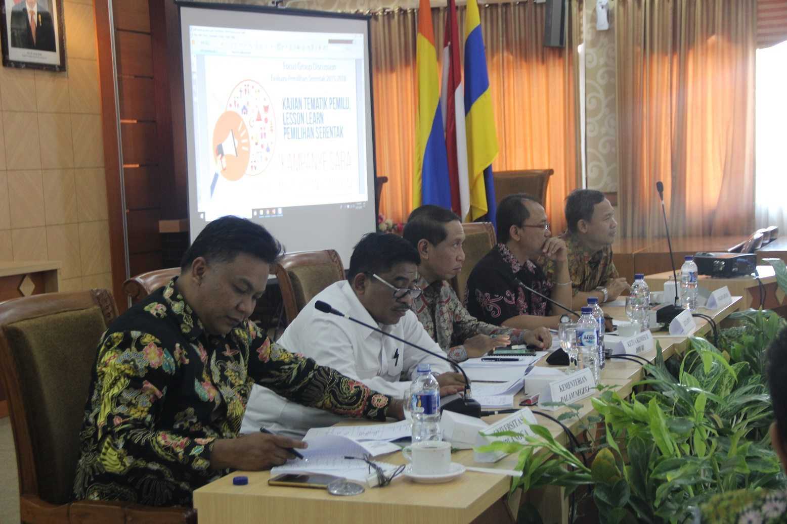 Surabaya, jatim.kpu.go.id- Politik SARA (Suku, Agama, Ras, dan Antargolongan) jangan dihindari, namun harus diatasi. Demikian disampaikan Ketua Komisi II DPR RI, Zainudin Amali dalam Forum FGD Evaluasi Pemilihan Serentak Tahun 2015-2018 dengan tema Kampanye SARA: regulasi, modus operandi, dan solusi yang diadakan oleh KPU RI di ruang Sukadana FISIP Universitas Airlangga Surabaya. FGD digelar hari ini, Rabu, tanggal 31 Oktober 2018, mulai dari pukul 07.30 sampai dengan 16.30 WIB. Hadir menjadi fasilitator dalam FGD yakni, Ketua Komisi II DPR RI, Zainudin Amali, Dirjen Otoda Kemendagri, Sony Sumarsono, Anggota Bawaslu RI, Rahmat Bagja, Pakar Hukum UIN Syarif Hidayatullah, Ismail Hasani, dan Akademisi, Kris Nugroho. Sementara itu, peserta FGD berasal dari kalangan KPU Provinsi, KPU Kota Surabaya, Bawaslu Kota Surabaya, NGO/ LSM (Perludem, JPPR, NETGRIT, Kemitraan, KODE), perwakilan parpol, serta mahasiswa Tata Kelola Pemilu. FGD kali ini merupakan gelombang kedua dari empat gelombang FGD yang diadakan oleh KPU RI. Sebagaimana disampaikan oleh Wakil Kepala Biro Perencanaan dan Data KPU RI, Bastian, empat gelombang FGD ini masing-masing dilaksanakan di Universitas Sumatera Utara (USU), Universitas Airlangga (UNAIR), Universitas Muhammadiyah Yogyakarta (UMY), serta Universitas Hasanudin (Unhas) Makasar. “Pada FGD gelombang kedua ini dibagi menjadi enam sub tema, yaitu pertama, kampanye SARA, Potensi Disintegrasi Bangsa; kedua, Penguatan Regulasi, Mencari Solusi Politik Identitas; ketiga, Pengaruh Pilkada DKI Jakarta Tahun 2017 terhadap Dinamika Pilkada di Indonesia; keempat, Modus Operandi Kampanye SARA; kelima, pragmatisme politik dan politik identitas; keenam, Politik Identitas, Bangkitnya Populisme Kanan di Indonesia,” jelas Wakaro Perencanaan dan Data KPU RI ini (31/10/2018). Adapun tujuan dilaksanakannya FGD sebagaimana dilaporkan Bastian ialah 1) untuk mentradisikan kebijakan berbasis riset, 2) menemukan akar permasalahan atas persoalan-persoalan yang berkaitan dengan manajemen pemilihan, penyelenggara pemilu, dan partisipasi dalam pemilihan, 3) mengidentifikasi permasalahan yang muncul dalam pilkada serentak 205,2017, dan 2018, serta 4) menyusun rekomendasi perbaikan secara menyeluruh (baik pada aspek regulasi, kelembagaan, maupun teknis lainnya dalam penyelenggaraan pemilihan kedepan). Berikutnya, Ketua Komisi II DPR RI dalam paparannya menyampaikan bahwa sepanjang NKRI berdiri maka politik SARA ini akan muncul terus-menerus. “Politik SARA jangan dihindari, tapi harus diatasi. Jika didiskusikan terus-menerus, akan ditemukan format yang cocok untuk memanage politik SARA,” tegasnya. Selanjutnya menurut Zainudin, dengan diskusi terus-menerus terkait politik SARA, akan ada kesadaran yang melekat pada bangsa Indonesia. “Sehingga akan ada kesadaran pula mengenai politik SARA mana yang bersifat positif dan mana yang bersifat negatif,” pungkasnya. (AACS)