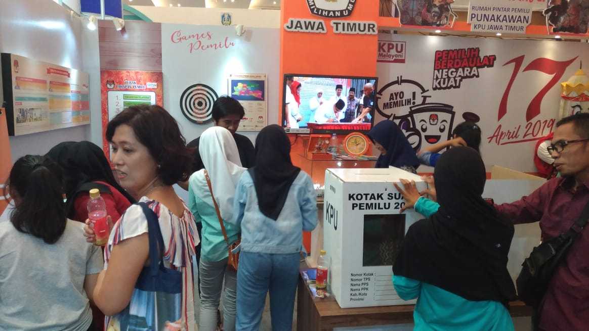 Surabaya, jatim.kpu.go.id- Stand Pemilu Expo Komisi Pemilihan Umum Jawa Timur (KPU Jatim), yang buka di acara Jatim Fair 2018 mendapat kunjungan pemilih disabilitas, Minggu (14/10). Ada sebanyak 5 orang pemilih disabilitas bersama satu orang pendamping yang datang ke stand nomor 53 - 54, lantai 3 Grand City Mall Surabaya. Mereka datang sekitar pukul 13. 30 Wib, dalam rangka berkunjung dan juga mencari informasi terkait tahapan Pemilu 2019. Pendamping disabilitas Lusti menyatakan, pengunjung yang hadir kebanyakan berasal dari Kabupaten Malang, yang merupakan didikan dan dampingan dari salah satu dinas yang juga ikut buka stand di Jatim Fair 2018. Selain dari tuna netra, pengunjung yang datang ke Pemilu Expo juga ada yang tuna rungu dan daksa. Itupun juga sudah mendapatkan hak pilih, sehingga sangat membantu saat berkunjung ke stand KPU Provinsi Jawa Timur. "Sangat membantu sekali bagi kalangan disabilitas, termasuk juga ada surat suara untuk kalangan tuna netra sehingga bisa tahu langsung model dan jenisnya," ujarnya. Lusi menambahkan, para disabilitas setelah berkunjung merasa sudah terfasilitasi dalam setiap tahapan sudah ramah terhadap para pemilih dari kalangan disibilitas. Termasuk informasi yang diperoleh berkaitan dengan Tempat Pemungutan Suara (TPS), yang tata letaknya juga ramah dengan kalangan pemilih disabilitas. Tentu dengan harapan partisipasi termasuk dari kalangan disabilitas juga meningkat, dalam Pemilu 2019 mendatang. "Souvenir yang diberikan juga menarik, sukses untuk KPU Provinsi Jawa Timur dalam menghadapi Pemilu 2019 nanti," pungkasnya. Sementara itu, hingga Minggu petang, jumlah pengunjung stand Pemilu Expo KPU Jatim sudah mencapai 1.500 lebih. Diperkirakan jumlah pengunjung akan terus bertambah, seiring dengan hari terakhir pelaksanaan Jatim Fair 2018 yang bertempat di Grand City Mall Surabaya. Panitia sampai kewalahan melayani pengunjung, termasuk penyediaan souvenir yang cukup banyak diminati oleh pengunjung yang hampir rata dari beberapa Kabupaten/Kota se-Jawa Timur. "Permainan (game) yang berkaitan dengan Pemilu, serta cek DPT menjadi tempat yang paling favorit dikunjungi oleh para pengunjung," ungkap Sektiono, salah satu petugas stand KPU Jatim. (BAY)