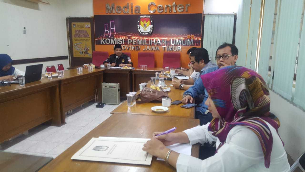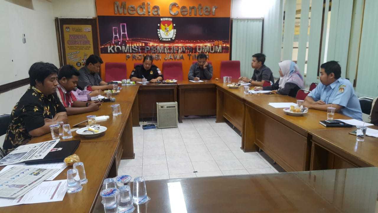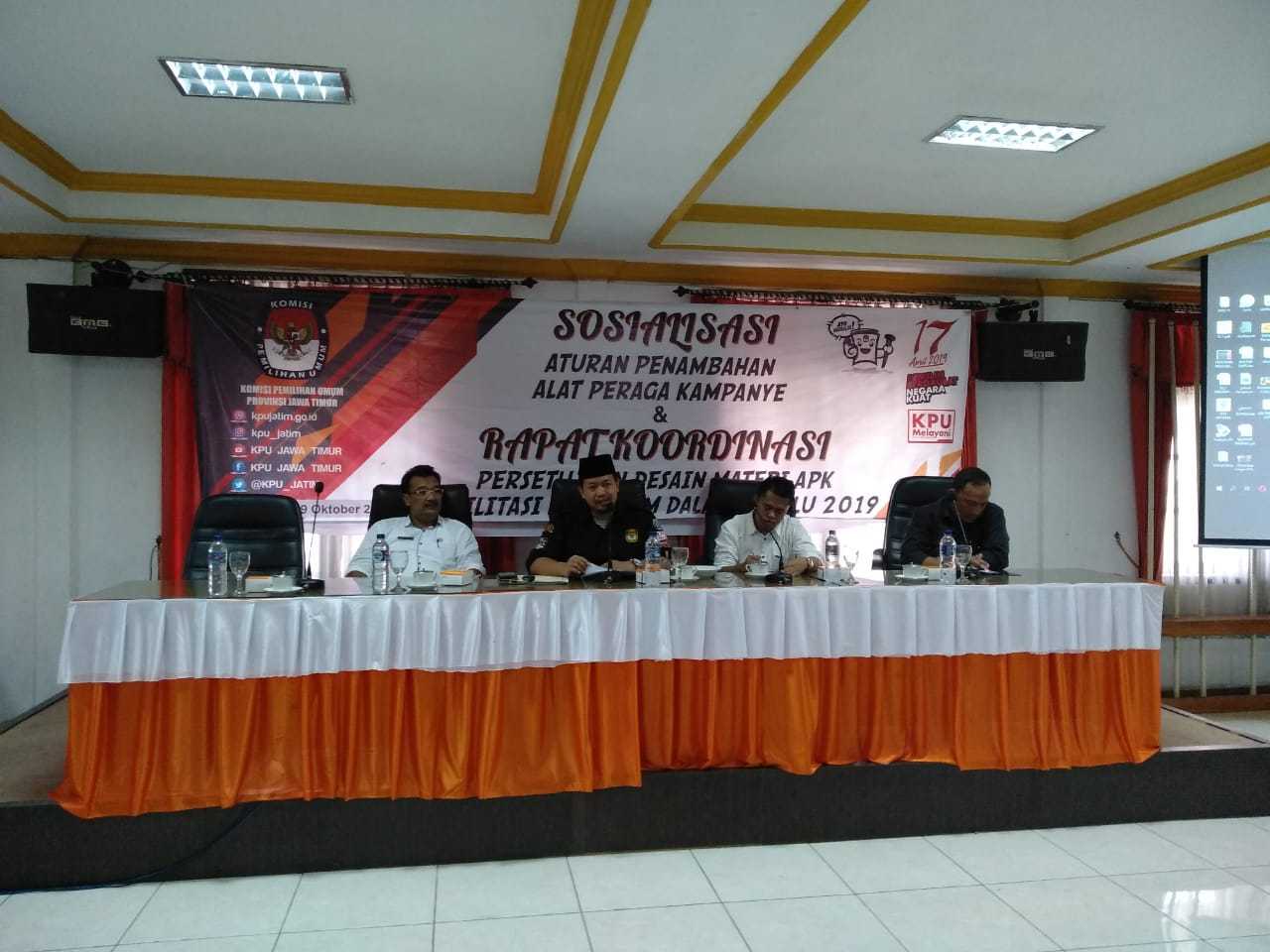 Surabaya, jatim.kpu.go.id – Komisi Pemilihan Umum Jawa Timur (KPU Jatim) bersama dengan peserta Pemilihan Umum (Pemilu) 2019, melakukan rapat koordinasi (rakor) di aula lantai 2 setempat, Selasa (9/10). Rakor juga dihadiri oleh pihak terkait di antara Badan Pengawas Pemilu (Bawaslu) dan Satpol PP Jawa Timur, serta TNI dan Polri. Adapun materi rakor membahas aturan penambahan Alat Peraga Kampanye (APK) dan persetujuan desain materi (approval) APK Fasilitasi KPU Provinsi Jawa Timur dalam Pemilu 2019. Rakor dipimpin langsung oleh Divisi Sumber Daya Manusia dan Partisipasi Masyarakat (SDM dan Parmas) KPU Jatim, Gogot Cahyo Baskoro. Pria yang akrab dipanggil Gogot ini menjelaskan, dalam approval APK mengundang seluruh peserta Pemilu 2019 yakni partai politik (parpol), Dewan Perwakilan Daerah (DPD) dan tim kampanye calon Presiden dan Wakil Presiden. Approval dilakukan setelah sebelumnya desain APK dikoreksi bersama dengan Bawaslu Jawa Timur. “Aprroval menjadi penting sebelum APK dicetak, makanya kami undang seluruh peserta Pemilu agar bisa segara melakukan approval,” ujarnya. Dia menambahkan, bagi yang sudah diapproval dan dinyatakan tidak ada persoalan, akan segera dilakukan cetak APK oleh rekanan yang ditunjuk KPU Provinsi Jawa Timur. Serah terima APK, akan dilakukan di kantor KPU setempat dan selanjutnya untuk pemasangan diserahkan sepenuhnya kepada seluruh peserta Pemilu. “Untuk pemasangan terserah dari peserta Pemilu, asal dengan catatan tidak dipasang ditempat yang dilarang,” pungkasnya. Sementara itu, Divisi Pengawasab dan Pencegahan Bawaslu Provinsi Jawa Timur Aang Kunaifi mewanti-wanti agar seluruh peserta Pemilu 2019 taat aturan dalam pemasangan APK. Dia berharap jangan sampai dipasang di lokasi atau tempat yang masuk dalam larangan, oleh Pemerintah Kabupaten (Pemkab) dan Pemerintah Kota (Pemkot). “APK yang difasilitasi oleh KPU Jatim, selain dipasang dilokasi yang tidak melanggar aturan, juga harus dijaga biar awet karena dapatnya cuma satu kali,” pungkasnya. (BAY)