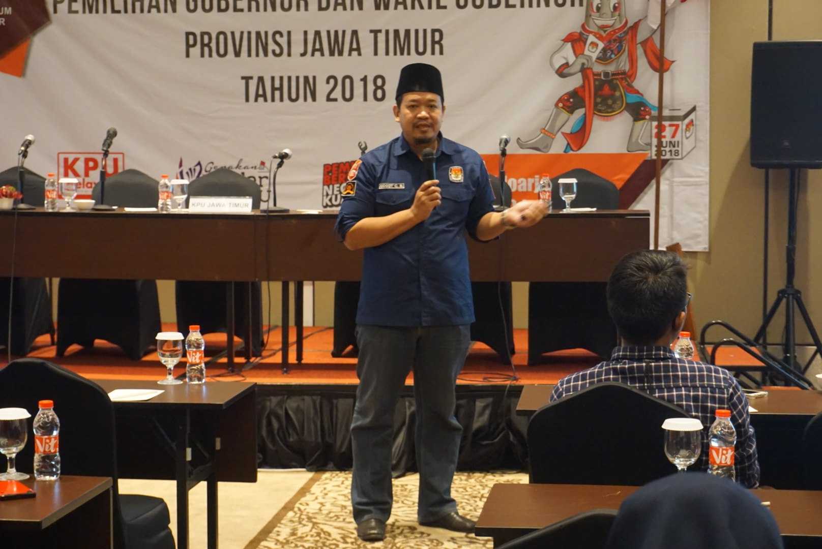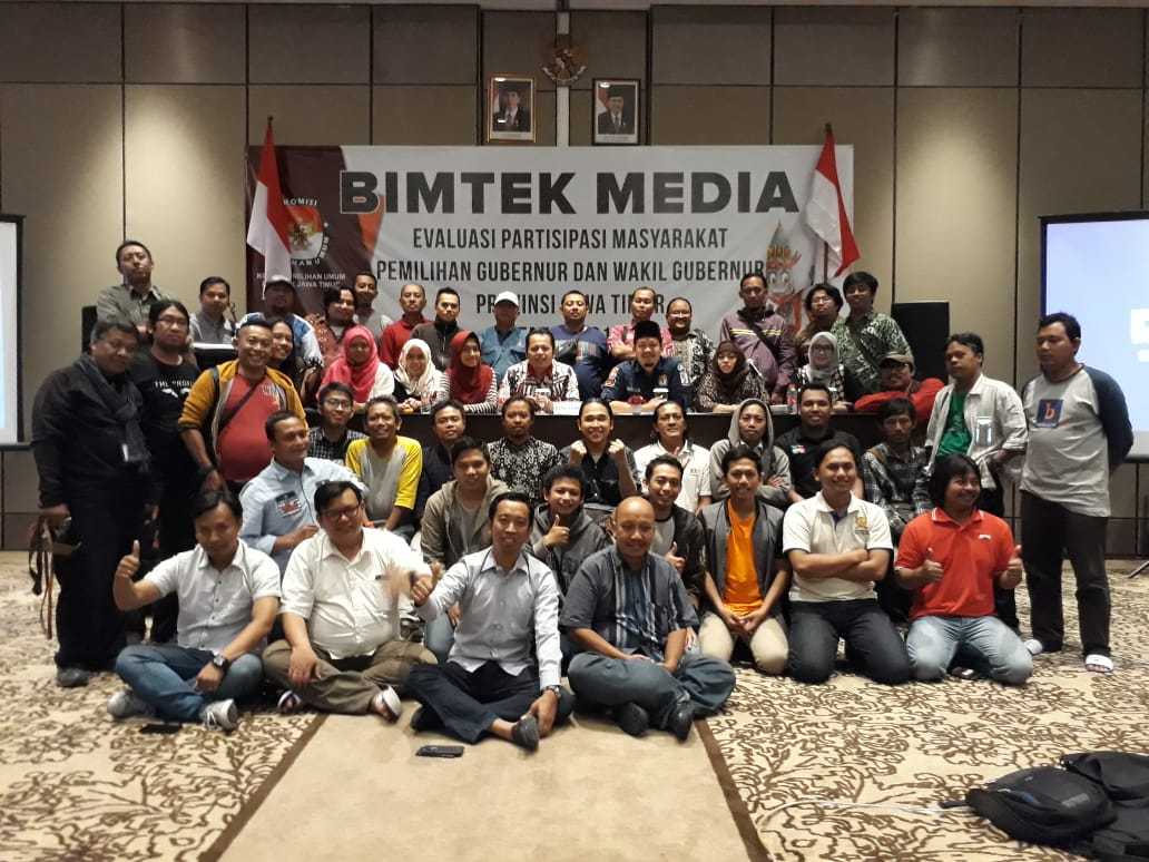 Sidoarjo, jatim.kpu.go.id – Komisi Pemilihan Umum (KPU) Jawa Timur melaksanakan Bimbingan Teknis (Bimtek) Media di Hotel Premier Place Jalan Raya Juanda Sidoarjo. Bimtek yang mengundang kalangan media massa ini, berlangsung selama dua hari yakni 19 – 20 Juli 2018. Adapun tema Bimtek Media yang diusung yakni terkait Evaluasi Partisipasi Masyarakat (Parmas) Pemilihan Gubernur dan Wakil Gubernur (Pilgub) Provinsi Jawa Timur 2018. Acara yang dihadiri oleh kalangan jurnalis media cetak, televisi, radio dan online ini dibuka langsung oleh Ketua KPU Provinsi Jawa Timur Eko Sasmito. Hadir mendampingi dari Divisi Sumber Daya Manusia dan Partisipasi Masyarakat (SDM dan Parmas) KPU Provinsi Jawa Timur Gogot Cahyo Baskoro dan Divisi Perencanaan dan Data KPU Provinsi Jawa Timur Choirul Anam. Ketua KPU Provinsi Jawa Timur Eko Sasmito dalam sambutannya mengatakan bahwa Bimtek Media yang dilaksanakan kali ini lebih pada tahap evaluasi, terutama terkait evaluasi terhadap Partisipasi Masyarakat (Parmas) dalam Pilgub Jawa Timur Rabu (27/6) yang lalu. Dalam pelaksanaan Pilkada serentak 2018 KPU RI mempunyai target partisipasi masyarakat 77,5%, “Target tersebut menjadi point entry dalam kegiatan kali ini. Dari target yang ditetapkan KPU RI dan capaian KPU Jatim dalam Pilgub 2018, bisa kita evaluasi bersama,” ujarnya. Pria yang akrab dipanggil Eko ini menambahkan, paling tidak dengan adanya Bimtek Media tersebut pihaknya bisa meminta masukan dari kalangan media massa. Baik itu dari media cetak, televisi, radio dan online untuk meningkatkan Parmas ke depan, termasuk menjadi bagian masukan dalam Pemilu mendatang. “Walau pun kalangan media bukan satu-satunya dalam permasalahan yang ada diparmas, akan tetapi kawan-kawan media yang paling menguasai kondisi masyarakat di lapangan. Masukannya sangat berarti,” tambahnya. (MC – TUNG/BIB/TRI/ANY/BAY)