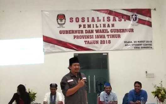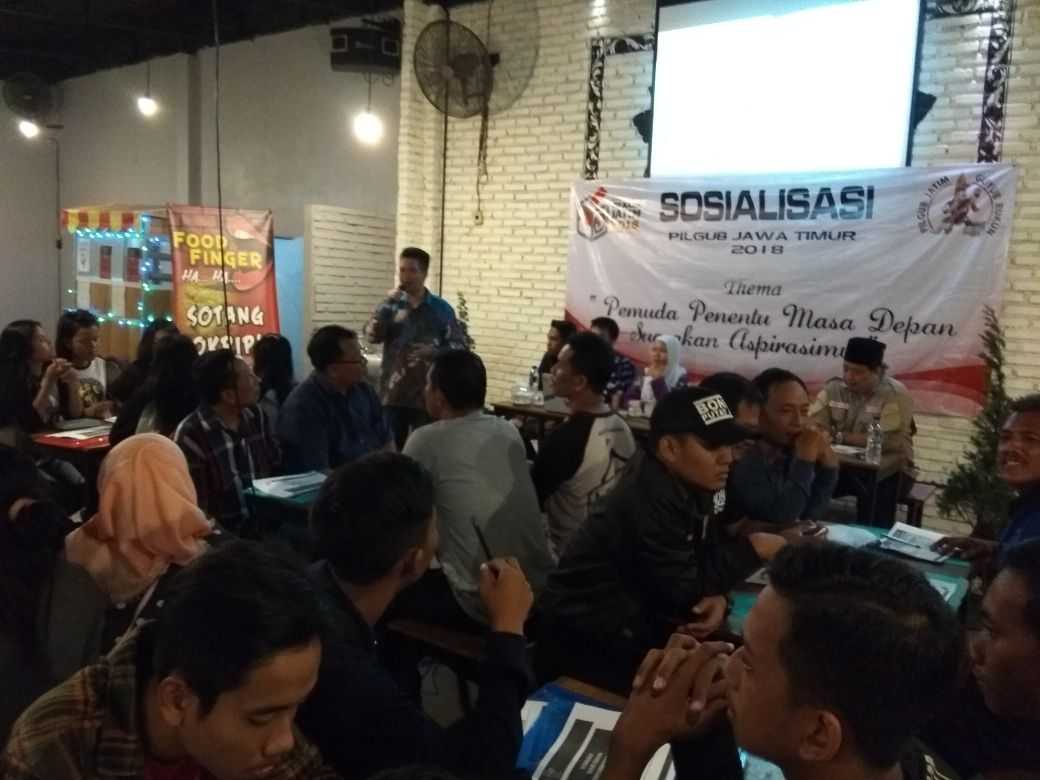 Surabaya, jatim.kpu.go.id– Sosialisasi tatap muka Pemilihan Gubernur dan Wakil Gubernur Jawa Timur (Pilgub Jatim) digelar di eks lokalisasi Dolly Surabaya, Jum’at (23/3) malam. Sosialiasi dengan segmen pemilih pemula dan pemuda karang taruna ini diselenggarakan oleh Pengurus Wilayah Forum Muda Demokrasi (Fomdem) Jawa Timur yang bekerjasama dengan Komisi Pemilihan Umum Jawa Timur (KPU Jatim). Dalam sosialisasi yang bertempat di salah satu bekas wisma lokalisasi yang dikemas menjadi kawasan kuliner, tepatnya Cafe Ropang Jalan Raya Jarak Surabaya tersebut, berlangsung sangat antusias dengan diikuti oleh seratus lebih peserta. Sebagian besar mereka adalah dari karang taruna sekitar eks lokalisasi Dolly Surabaya. Sosialisasi semakin gayeng dan berbobot dengan hadirnya tiga narasumber yang kompeten dalam bidang masing-masing. Ketiganya adalah Divisi SDM dan Parmas KPU Jatim, Gogot Cahyo Baskoro, Tokoh Masyarakat eks lokalisasi Dolly, Ernest Tegolelono dan Anggota KPID Jatim, Nur Elya Anggraeni. Hadir juga dalam acara sosialisasi dari Divisi Perencanaan dan Data KPU Kota Surabaya, Robiyan Arifin, jajaran Panitia Pemilihan Kecamatan (PPK) Sawahan dan Ketua RT/RW sekitar eks lokalisasi Dolly. Divisi SDM dan Parmas KPU Jatim, Gogot Cahyo Baskoro mengajak kepada seluruh pemilih pemula dan karang taruna yang berada di eks lokalisasi Dolly untuk menjadi pemilih cerdas. Caranya, minimal sadar akan hak dan kewajibannya untuk memilih dalam Pilgub Jatim yang akan digelar Rabu, 27 Juni 2018 mendatang. “Tentu jangan sampai hak suara anda semua ditukar dengan materi (money politic), karena itu ada sangsi yang sangat tegas hingga sampai pidana,” ujarnya. Komisioner KPU Jatim kelahiran Kabupaten Magetan ini menerangkan, dengan menukar suara yang diganti uang sama halnya dengan pelanggaran berat yang sanksinya bisa denda sampai Rp 1 miliar. Terlebih, harga diri yang menjadi taruhan karena suara yang ditukar dengan uang kalau dihitung selama 5 tahun kedepan hanya setara dengan harga satu bungkus permen. Dia optimis pemilih yang ada di eks lokalisasi Dolly akan memilih dengan hati nurani masing-masing. Terlebih, juga diminta untuk membantu KPU Jatim untuk mensosisialisasikan ke warga yang lain agar juga dalam Pilgub Jatim nanti, juga menyalurkan hak pilihnya. “Apalagi yang hadir ini sebagian besar dari kalangan pemuda, tentunya akan bisa berkontribusi dalam meningkatkan partisipasi dalam menggunakan hak pilihnya,” terang alumnus Universitas Jember tersebut. Berikutnya, dalam paparan materinya dihadapan kalangan pemilih pemuda. Tokoh masyarakat eks lokalisasi Dolly Surabaya, Ernest Tegolelono mengajak kepada seluruh peserta untuk menjadi pemilih aktif dalam Pilgub Jatim nanti. Pemilih aktif dalam artian, setelah mendapat sosialisasi juga berkewajiban mengajak yang lain untuk tidak Golput. “Jangan sampai tidak memilih, karena menyangkut nasib kita selama lima tahun ke depan. Semua yang hadir disini saya minta jadi agen yang menyukseskan Pilgub Jatim,” terangnya. Sementara itu, Komisioner KPID Jawa Timur, Nur Elya Anggraeni menyatakan pihaknya terus menyoroti segala bentuk pelanggaran penyiaran, termasuk iklan media dalam Pilgub Jatim. Itu sebagai bentuk kepastian bahwa apa yang dilakukan, sebagai bentuk control agar lembaga penyiaran mentaati aturan. “Kami juga tidak segan-segan memberi peringatan, bagi paslon yang nekad pasang iklan di luar ketentuan yang ada,” ucapnya. (MC – BAY)