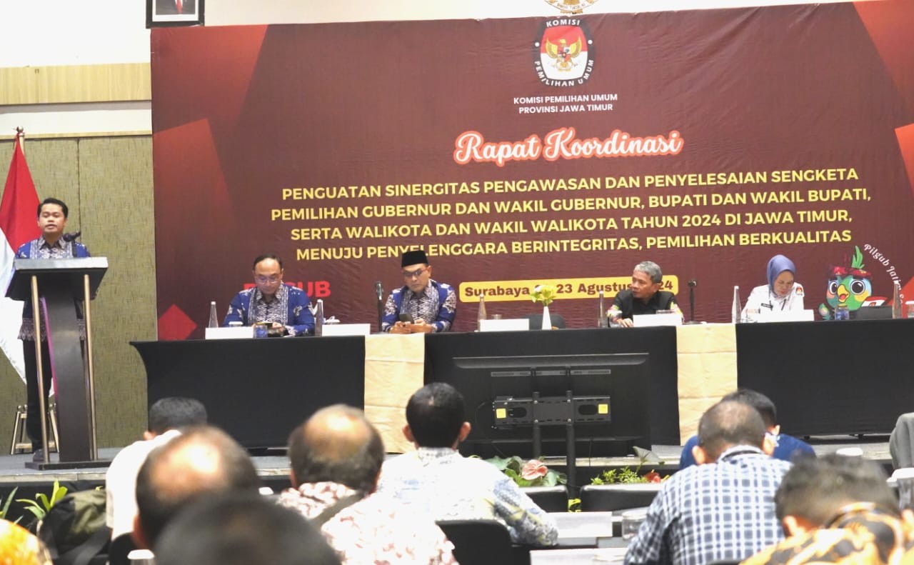 Surabaya, jatim.kpu.go.id- Komisi Pemilihan Umum Provinsi Jawa Timur (KPU Jatim) menerima pendaftaran Pasangan Calon Gubernur dan Wakil Gubernur Jawa Timur 2024, Khofifah Indar Parawansa-Emil Elestianto Dardak. Pendaftaran dilaksanakan di Kantor KPU Jatim, jalan Raya Tenggilis Nomor 1-3, Surabaya pada Rabu, 28 Agustus 2024. Khofifah-Emil menjadi Pasangan Calon Gubernur dan Wakil Gubernur Jatim 2024 pertama yang mendaftar ke KPU Jatim. Ketua KPU Jatim, Aang Kunaifi mengatakan bahwa berdasarkan hasil verifikasi dari tim verifikator, dokumen pendaftaran yang disampaikan pasangan Khofifah-Emil dinyatakan lengkap dan diterima, serta selanjutnya akan dilakukan verifikasi berkas. "Berdasarkan hasil laporan dari tim verifikator kami, dokumen yang disampaikan pasangan Khofifah-Emil kami nyatakan lengkap dan diterima," kata Aang dalam sambutannya. Aang mengatakan, pada 27-29 Agustus 2024 merupakan tahapan pendaftaran sesuai PKPU Nomor 2 Tahun 2024 tentang Tahapan dan Jadwal Pemilihan Gubernur dan Wakil Gubernur, Bupati dan Wakil Bupati, serta Walikota dan Wakil Walikota Tahun 2024. Pihaknya juga telah menyesuaikan dengan situasi terkini pasca putusan MK. "Beberapa formulir juga disesuaikan. Terima kasih kerja sama kawan-kawan LO yang bertugas karena sudah kooperatif. Dan di tahapan ini tugas kami hanya menerima dokumen pendaftaran beserta kelengkapannya," kata Aang dalam sambutannya. Aang bersyukur karena berdasarkan laporan dari tim verifikator yang telah ditetapkan, dokumen pasangan calon Khofifah Indar Parawansa dan Emil Elestianto Dardak dinyatakan lengkap dan diterima. Selanjutnya, Kata Aang, akan dilakukan verifikasi administrasi, serta verifikasi faktual bilamana hal itu diperlukan. "Dan pasca ini juga kami akan memberikan surat pengantar untuk pasangan calon melakukan pemeriksaan kesehatan yang dijadwalkan besok pagi. Itu karena tahapannya cukup padat dan kami juga menyesuaikan," ujarnya. Aang menyampaikan terima kasih kepada semua pihak yang telah mendukung KPU Jatim dalam seluruh tahapan Pilkada Jatim 2024. Ia memastikan seluruh tahapan akan diupayakan semaksimal mungkin, karena hal ini merupakan hajat besar yang dilaksanakan di provinsi yang besar. Aang pun mengajak semua pihak untuk bisa bersama-sama melaksanakan penyelenggaran Pilkada di Jatim sesuai dengan prinsip penyelenggaraan Pemilu. Iapun mengajak semua pihak untuk mengutamakan upaya yang sudah dicanangkan dalam tagline Pilgub Jatim 2024, yaitu 'Seneng Bareng.' "Kontestasi silahkan, beda pilihan silahkan, tetapi keceriaan, seneng bareng, itu tidak pernah dilupakan," ucapnya. Bakal calon Gubernur Jatim Khofifah Indar Parawansa sepakat untuk menjalani proses demokrasi pada Pilkada Jatim 2024 sesuai tagline 'Seneng Bareng.' Menurutnya, proses demokrasi memang harus dibangun di atas pilar-pilar kebahagiaan, kerukunan, dan kebersamaan. "Sesuai tagline 'Seneng Bareng' bahwa proses demokrasi harus dibangun di atas pilar-pilar kebahagiaan, kerukunan, dan kebersamaan," kata Khofifah.*** (AND/FIT)