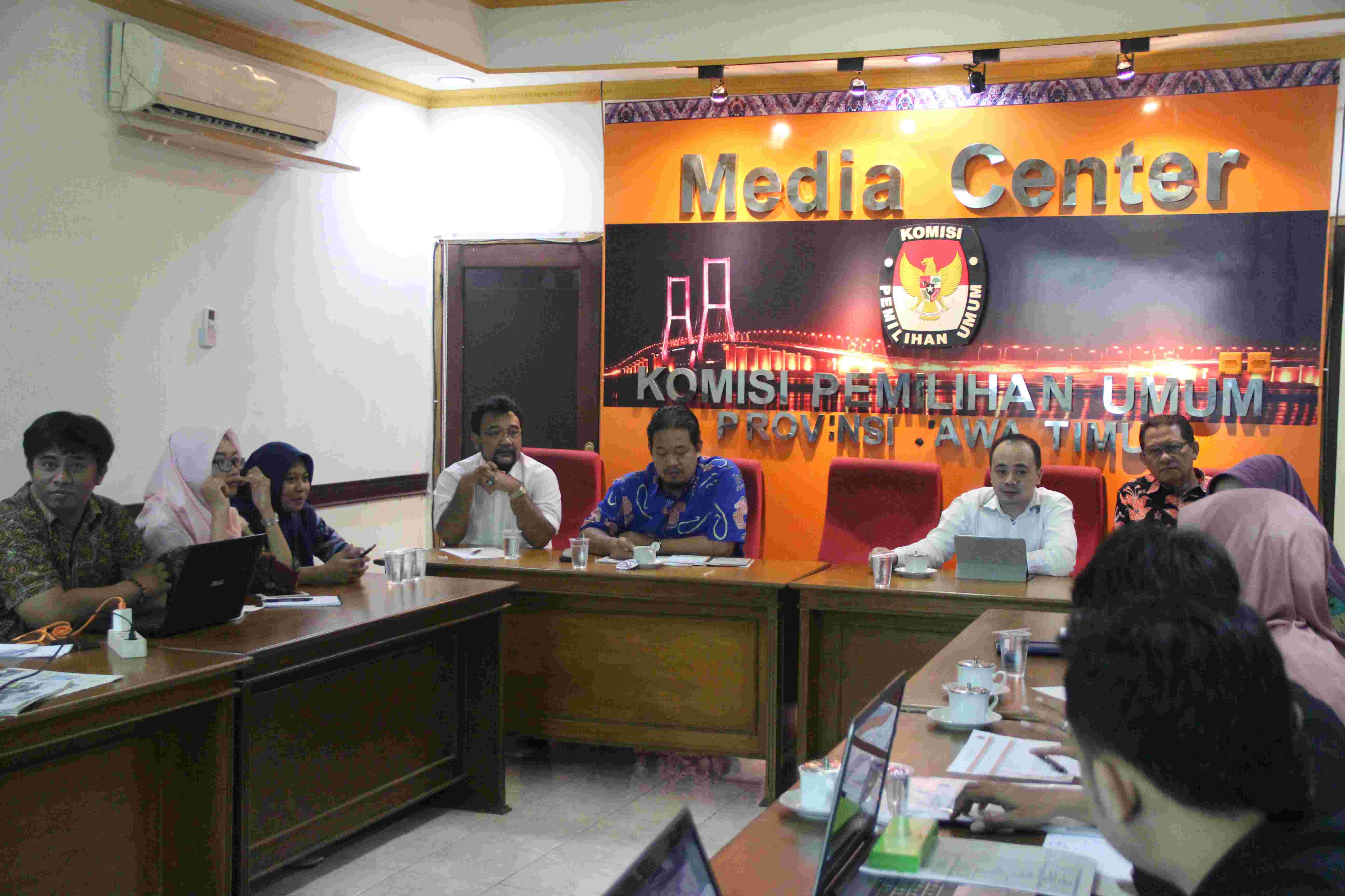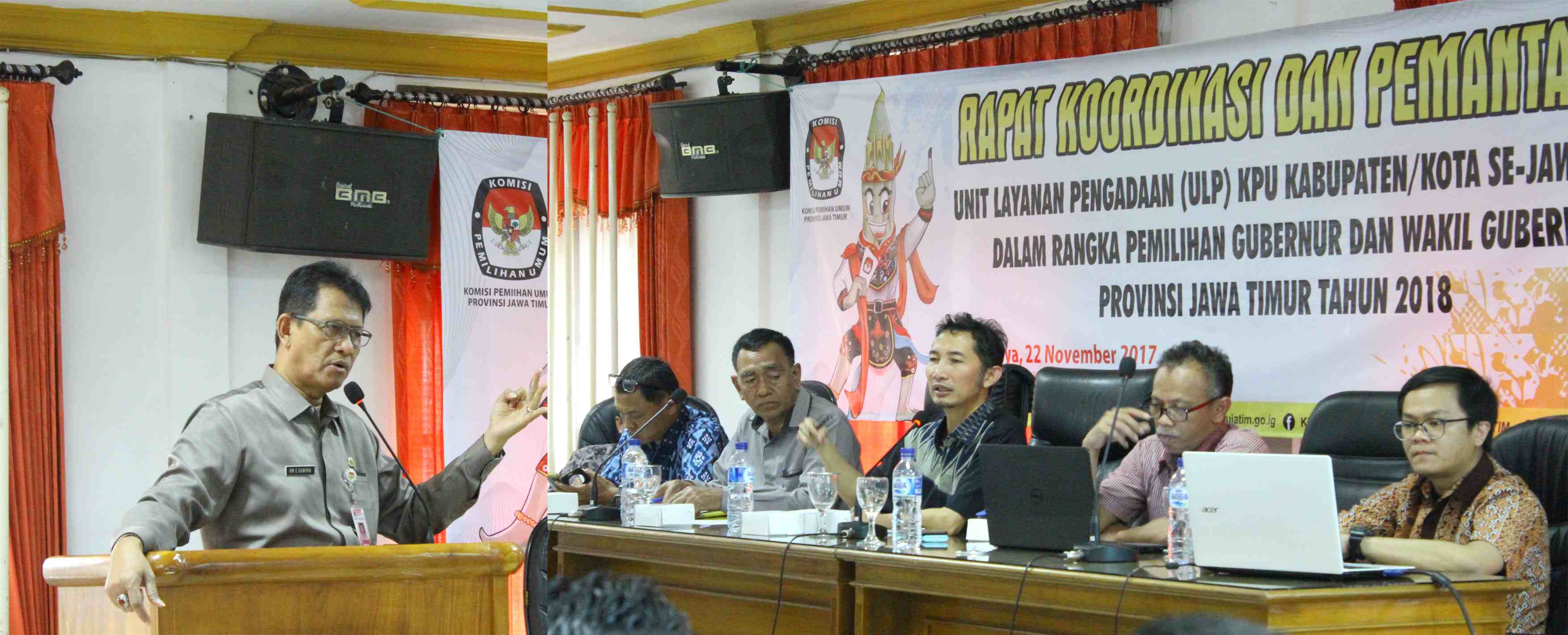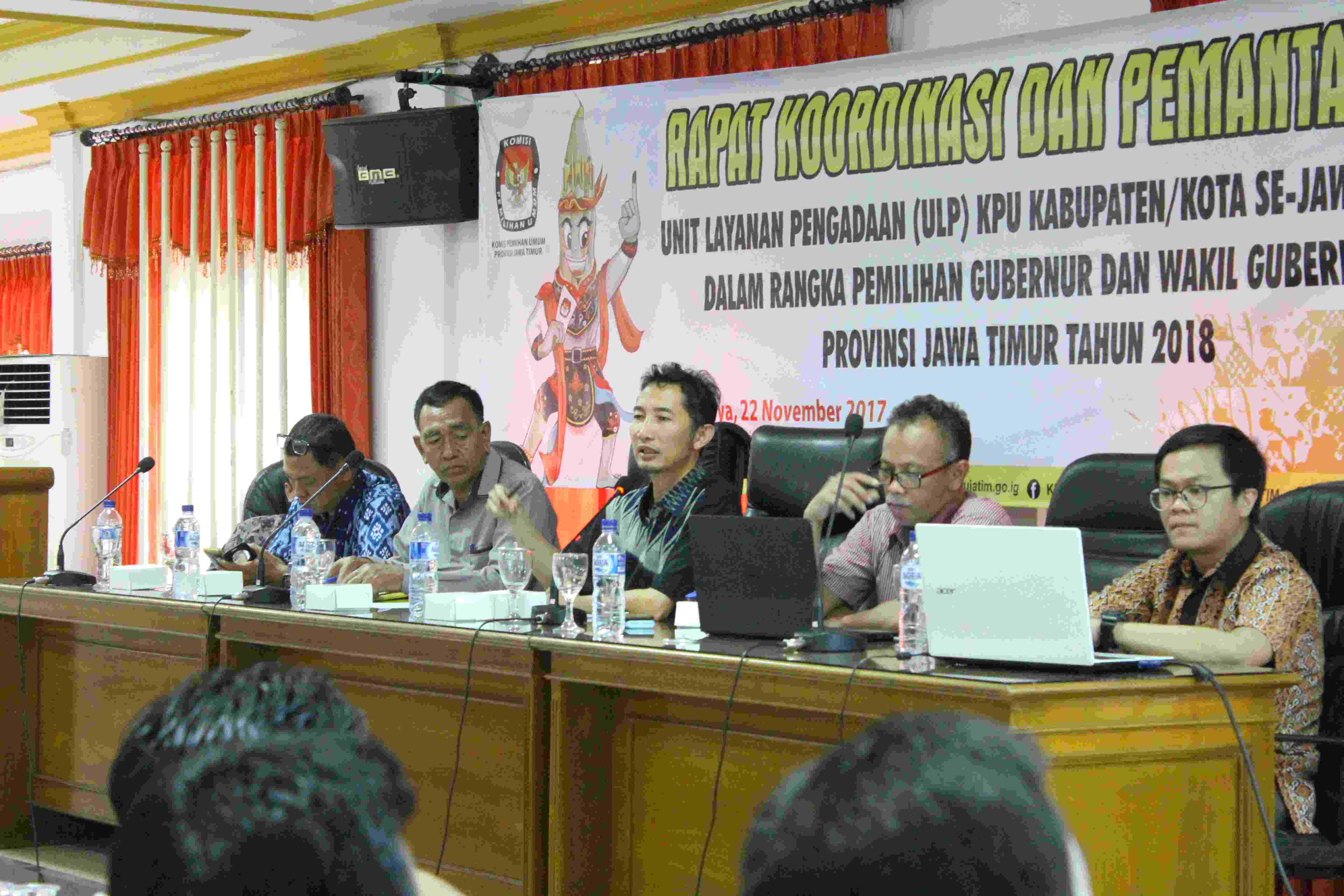 Surabaya, jatim.kpu.go.id- Guna memperoleh hasil maksimal dalam tahapan penyerahan syarat dukungan pasangan calon perseorangan Pemilihan Gubernur dan Wakil Gubernur Jawa Timur (Pilgub Jatim) 2018, Komisi Pemilihan Umum (KPU) setempat terus melakukan langkah maksimal. Salah satunya menggelar rapat koordinasi (rakor) seluruh staff yang ada di KPU Jatim. Dalam rakor yang dipimpin oleh Sekretaris KPU Jatim HM. Eberta Kawima dan Divisi Sumber Daya Manusia dan Partisipasi Masyarakat (SDM dan Parmas) KPU Jatim, Gogot Cahyo Baskoro, membahas segala lini persiapan tahapan calon perseorangan. Baik mulai dari petugas yang menerima syarat dukungan pasangan calon perseorangan, sampai lokasi dan keamaan dalam masa penerimaan calon perseorangan. Rakor juga menghasilkan Standar Operasional Prosedur (SOP), sekaligus simulasi saat penerimaan syarat dukungan pasangan calon perseorangan. “Jika perlu simulasi lanjutan dalam penerimaan dokumen dukungan Paslon, segera dilakukan karena sampai hari ini belum ada yang datang dan menyerahkan dokumen dukungan,” ujar Sekretaris KPU Jatim, HM. Eberta Kawima, dalam acara Rakor persiapan penerimaan syarat dukungan pasangan calon perseorangan Pilgub Jatim 2018, di aula lantai 2 KPU Jatim, jalan Raya Tenggilis Nomor 1-3 Surabaya. Pria yang akrab dipanggil Wima ini menjelaskan, proses penerimaan dokumen dukungan pasangan calon perseorangan adalah salah satu tahapan yang membutuhkan tenaga ektra. Untuk itu dia berharap seluruh jajaran tetap menjaga kesehatan, agar bisa melaksanakan tahapan itu secara maksimal. Terlebih, butuh kerja sama yang baik sesuai tugas yang sudah ditentukan dalam proses yang sudah dilakukan. “Salah satu tujuan Rakor ini untuk Koordinasi internal dan meningkatkan kerja sama kita, terutama dalam menghadapi tahapan calon perseorangan,” terangnya. Sementara itu, Divisi SDM dan Parmas KPU Jatim Gogot Cahyo Baskoro berharap seluruh staf ikut membantu dalam tahapan penyerahan dukungan calon perseorangan. Sebab, tidak hanya menerima dokumen saja, tapi juga akan menghitung dokuman berupa e-KTP yang diserahkan sesuai dengan daerah sebaran. “Memang butuh tenaga yang ekstra, sehingga saran saya banyak staf yang harus dilibatkan, termasuk juga dari KPU Kabupaten/Kota,” ucapnya. (MC – TUNG/BAY)