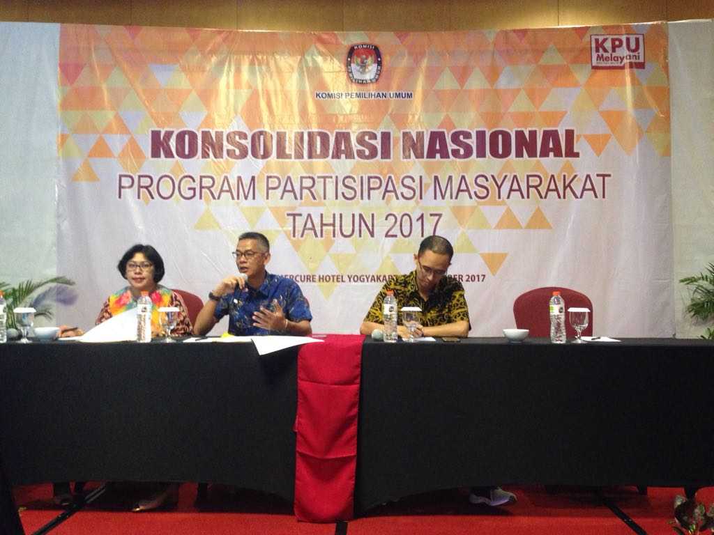 Karo Tekmas KPU RI, Nur Syarifah dalam pembukaan acara jam setengah 8 malam tadi menyampaikan latar belakang Konsolnas ini penting diadakan. “Latar belakang Konsolnas ini adalah karena pertama, selama ini sosialisasi masyarakat baik itu dalam bentuk kegiatan pendidikan pemilih masih belum terkonsolidasi dengan baik. Masih banyak kegiatan yang bersifat sporadis, masih belum ada suatu pembakuan, masih banyak penafsiran untuk sosialisasi maupun peningkatan pendidikan pemilih. Kedua, target partisipasi masyarakat KPU yakni 77,5% sebagaimana RPJMN,” ungkap Syarifah (05/10/17).