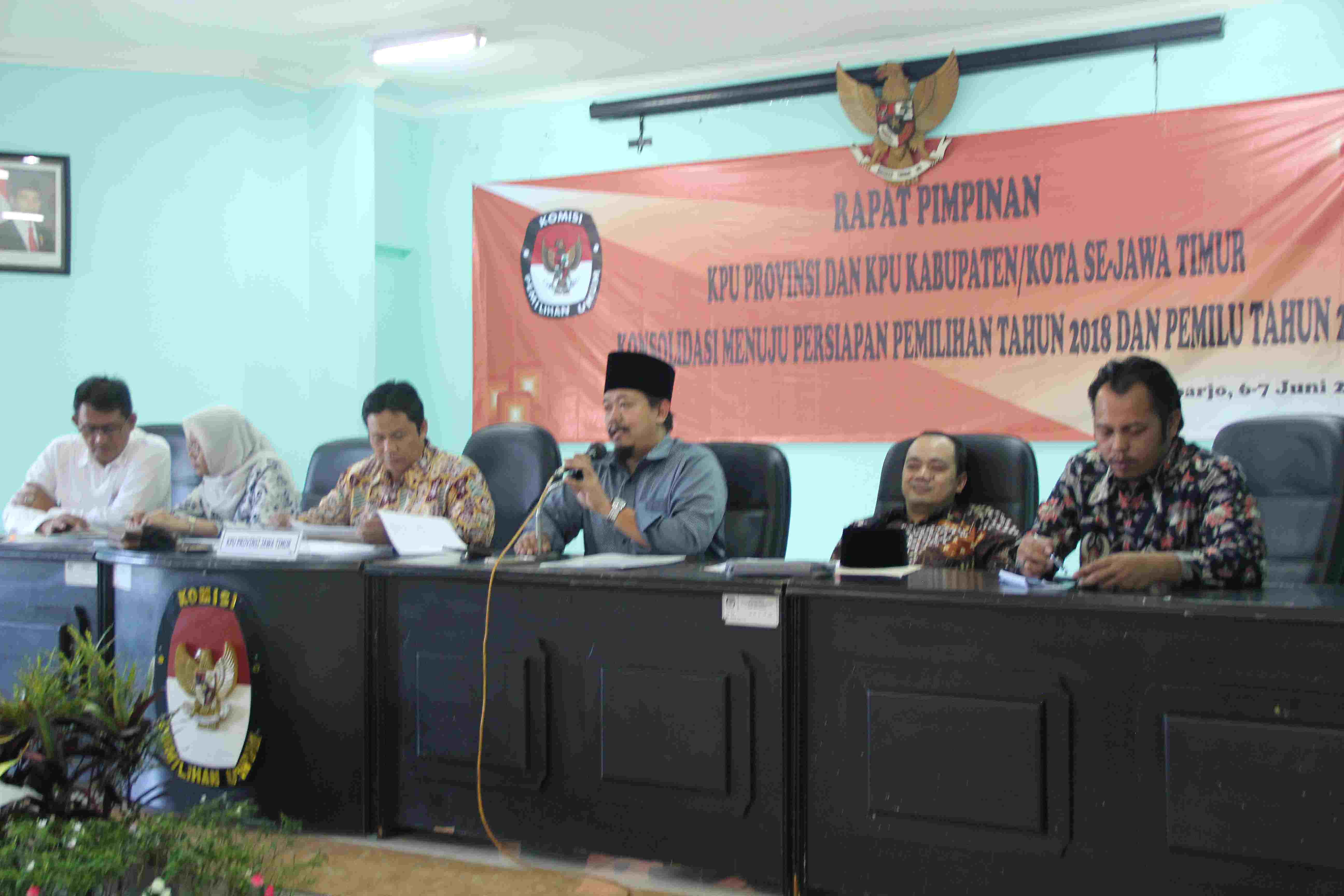 Surabaya, jatim.kpu.go.id- Setelah diinstruksikan oleh Komisi Pemilihan Umum Jawa Timur (KPU Jatim) secara informal, saat ini KPU Kabupaten/ Kota di Jawa Timur telah melakukan sosialisasi perekaman e-KTP. Data bahwa seluruh KPU Kabupaten/ Kota di Jawa Timur telah melakukan sosialisasi perekaman e-KTP dan berkoordinasi dengan Dispenduk, diketahui berdasarkan hasil Rapat Pimpinan dua hari kemarin (6-7/6) di KPU Kabupaten Sidoarjo. Divisi Perencanaan dan Data KPU Jatim, Choirul Anam menjelaskan bahwa sosialisasi perekaman e-KTP yang dilakukan oleh KPU Kabupaten/ Kota sebagai upaya untuk membantu Dinas Kependudukan (Dispenduk). “Hal ini perlu dilakukan karena berdasarkan data yang diperoleh dari Dispenduk tingkat Provinsi yang disampaikan melalui Gubernur pada rapat bersama dengan Komisi II DPR RI tanggal 2 Mei 2017, sebesar 14,28% Wajib KTP di Jawa Timur belum melakukan perekaman e-KTP,” ujar Anam (6/6). Sosialisasi perekaman e-KTP ini menurut Anam penting dilakukan sebab ke depan kemungkinan kuat yang menjadi pemilih adalah yang sudah melakukan perekaman e-KTP. “Dalam proses sosialisasi perekaman e-KTP ini KPU Kabupaten/ Kota perlu berkoordinasi pula dengan Dispenduk, untuk meminta data terkait yang belum melakukan perekaman e-KTP sampai tingkat desa. Tujuannya agar KPU memiliki data potensi penduduk yang tidak bisa memilih atau pemilih yang masuk dalam kategori pemilih yang belum memiliki e-KTP,” jelas Divisi Perencanaan dan Data KPU Jatim. Dengan sosialisasi perekaman e-KTP ini, sebagaimana disampaikan oleh Anam, juga dapat meminimalisir kekacauan terkait pemutakhiran DPT KPU. Kemudian, sosialisasi perekaman e-KTP oleh KPU Jatim diinstruksikan secara informal kepada Kabupaten/ Kota, karena memang sampai hari ini belum ada kebijakan formal dari KPU RI terkait pemutakhiran daftar pemilih berkelanjutan. “Saat ini Kita masih dalam proses menunggu Undang-undang dan Peraturan KPU. Senyampang menunggu Undang-undang dan Peraturan KPU, tidak ada salahnya KPU Kabupaten/ Kota ikut melakukan proses Pemutakhiran Daftar Pemilih Berkelanjutan dengan membantu Dispenduk. Adapun dasar hukum melakukan sosialisasi perekaman e-KTP ialah e-KTP menjadi salah satu syarat untuk memilih,” tegas Anam. Beberapa hal yang sudah dilakukan KPU Kabupaten/ Kota untuk mendukung sosialisasi perekaman e-KTP antara lain membuat form laporan untuk pemilih pemula, mencetak brosur, spanduk, serta baliho. (AACS)