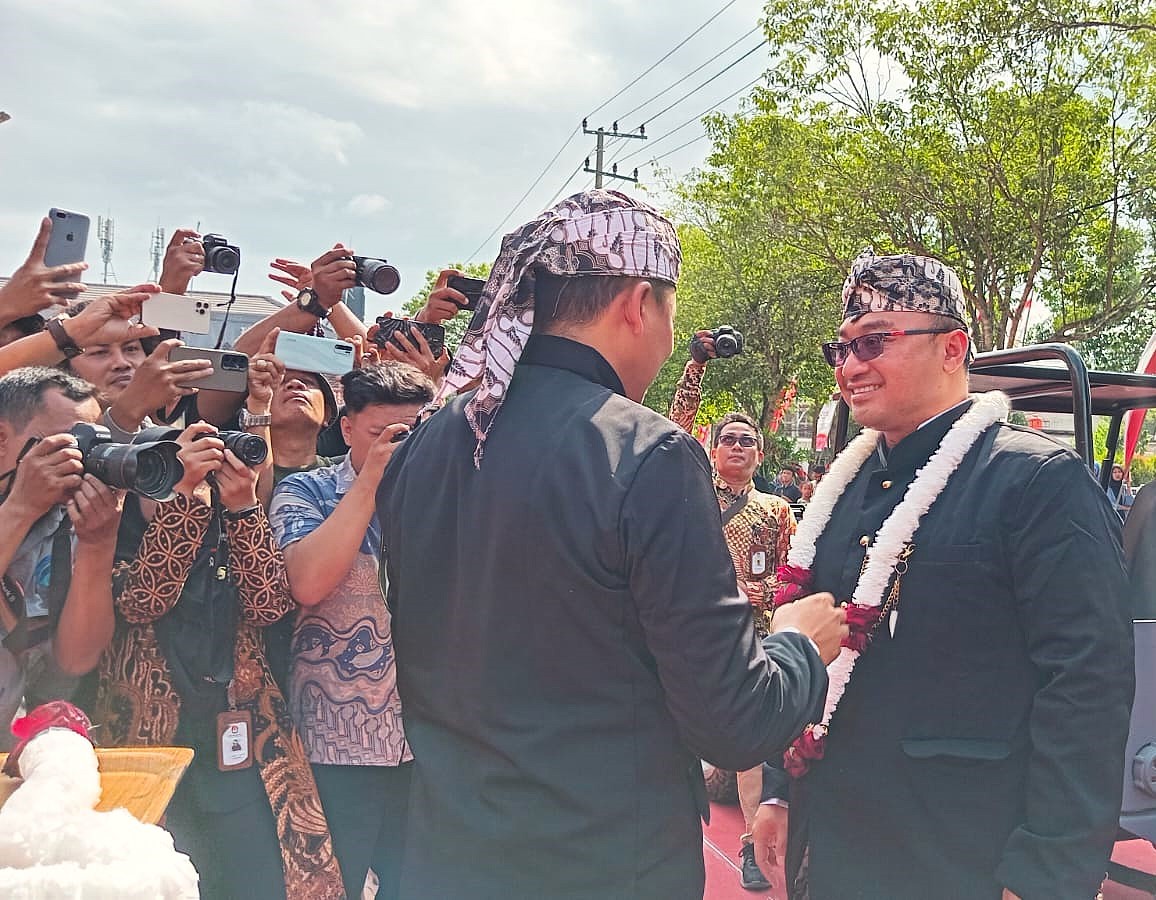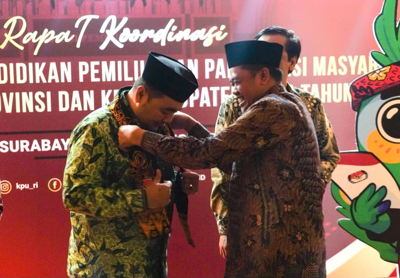 Sampang, jatim.kpu.go.id- Anggota Komisi Pemilihan Umum Provinsi Jawa Timur (KPU Jatim), Divisi Perencanaan dan Logistik, Miftahur Rozaq menghadiri Kirab Maskot Pilkada Serentak 2024 di Kabupaten Sampang. Kirab maskot digelar di Alun-Alun Trunojoyo Kabupaten Sampang pada Kamis, 8 Agustus 2024. Dalam sambutannya, Rozaq menyampaikan Kirab Maskot merupakan salah satu upaya untuk menyukseskan Pilkada Serentak 2024. Rozaq mengingatkan tanggung jawab untuk menyukseskan Pilkada Serentak harus dipegang bersama-sama oleh seluruh elemen masyarakat. "Tanggung jawab suksesnya Pilkada tidak hanya dari penyelenggara saja, tetapi juga seluruh elemen dari masyarakat, termasuk masyarakat Sampang," katanya. Menurut Rozaq, untuk menyukseskan penyelenggaraan Pilkada Serentak 2024 semua pihak harus memiliki komitmen untuk menjalankan tugasnya masing-masing. Baik itu KPU sebagai penyelenggara maupun masyarakat sebagai pemilih. Hal ini penting untuk terciptanya nilai-nilai demokrasi. "Modal besar sudah dimiliki. Tinggal bagaimana komitmen dari kapasitas kita sebagai penyelenggara, kapasitas kita sebagai pemilih, agar memperoleh nilai-nilai demokrasi," ucapnya. Rozaq pun mengapresiasi tingginya tingkat partisipasi masyarakat di Kabupaten Sampang pada Pemilu 2024. Yakni mencapai 98 persen. Ia berharap pada Pilkada serentak 2024 tingginya partisipasi masyarakat di Kabupaten Sampang bisa djaga bahkan ditingkatkan. "Angka partisipasi pada saat pelaksanaan Pemilu kemarin mencapai 98 persen, mudah-mudahan Pilkada serentak ke depannya dapat menyaingi dari angka-angka 98 persen tersebut," ujarnya. Pada kesempatan tersebut, Rozaq menyampaikan ribuan terima kasih dan mengapresiasi pemerintah dan legislatif di Kabupaten Sampang yang telah memfasilitas penyelenggaraan Kirab Maskot Pilkada serentak 2024. Rozaq mengatakan, kirab maskot yang digelar merupakan adopsi dari pelaksanaan kirab Pemilu 2024, namun lebih disempurnakan. "Kirab ini merupakan adopsi dari kirab Pemilu 2024, namun melewati jalur Madura yang dulu belum dilalui pada waktu kirab Pemilu 2024," kata Rozaq. Penjabat (Pj) Bupati Kabupaten Sampang, Sudarmanto menyampaikan harapanya agar kegiatan kirab yang digelar dapat menghadirkan Pilkada jujur dan adil. Kegiatan tersebut juga diharapkan bisa efektif mengajak seluruh masyarakat Sampang untuk berpartisipasi pada Pilkada Serentak 2024. "Ayo seluruh masyarakat Sampang berpartisipasi pada Pilkada 2024, agar pelaksanaannya dapat berjalan dengan, aman, tentram, dan lancar," katanya. Sudarmanto berharap, kirab maskot yang diselenggarakan juga dapat menjadikan penyelenggaraan Pilkada serentak tahun 2024 menjadi yang terbaik. Pemimpin yang terpilih juga diharapkan dapat membawa Sampang menjadi lebih baik ke depannya.*** (AND/ZIL/Ed.Red)