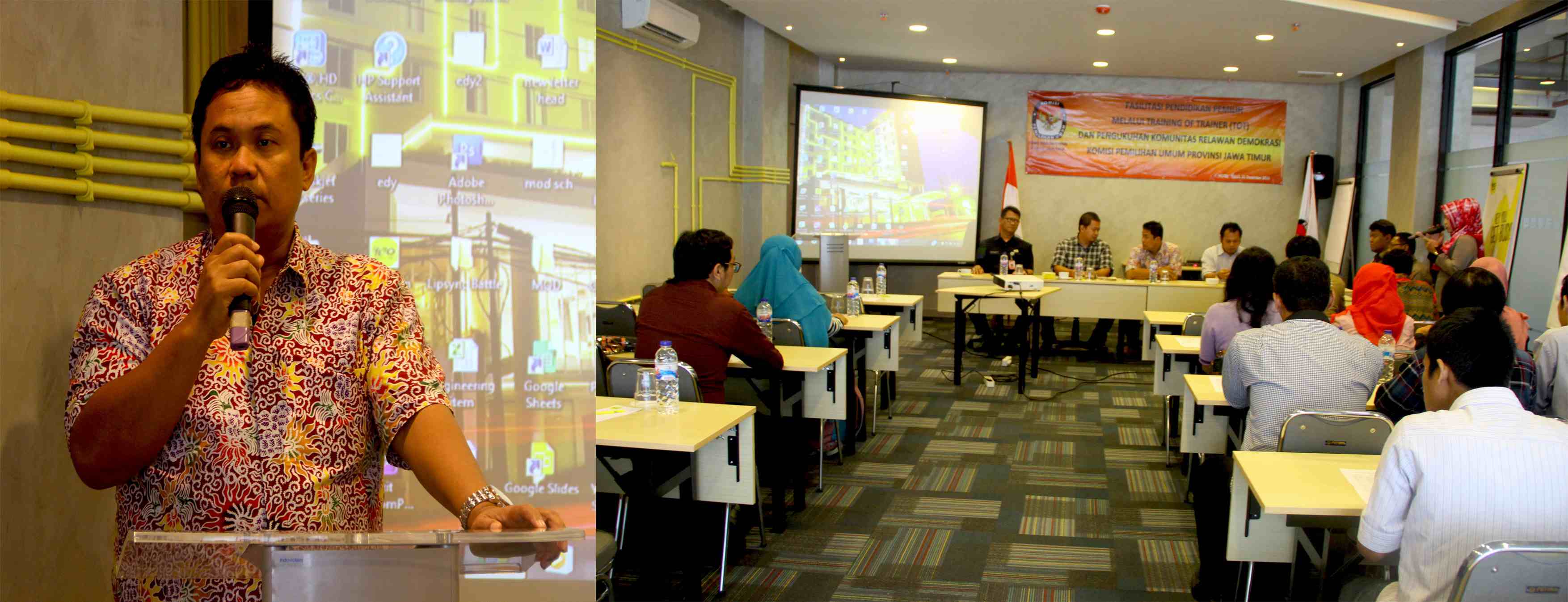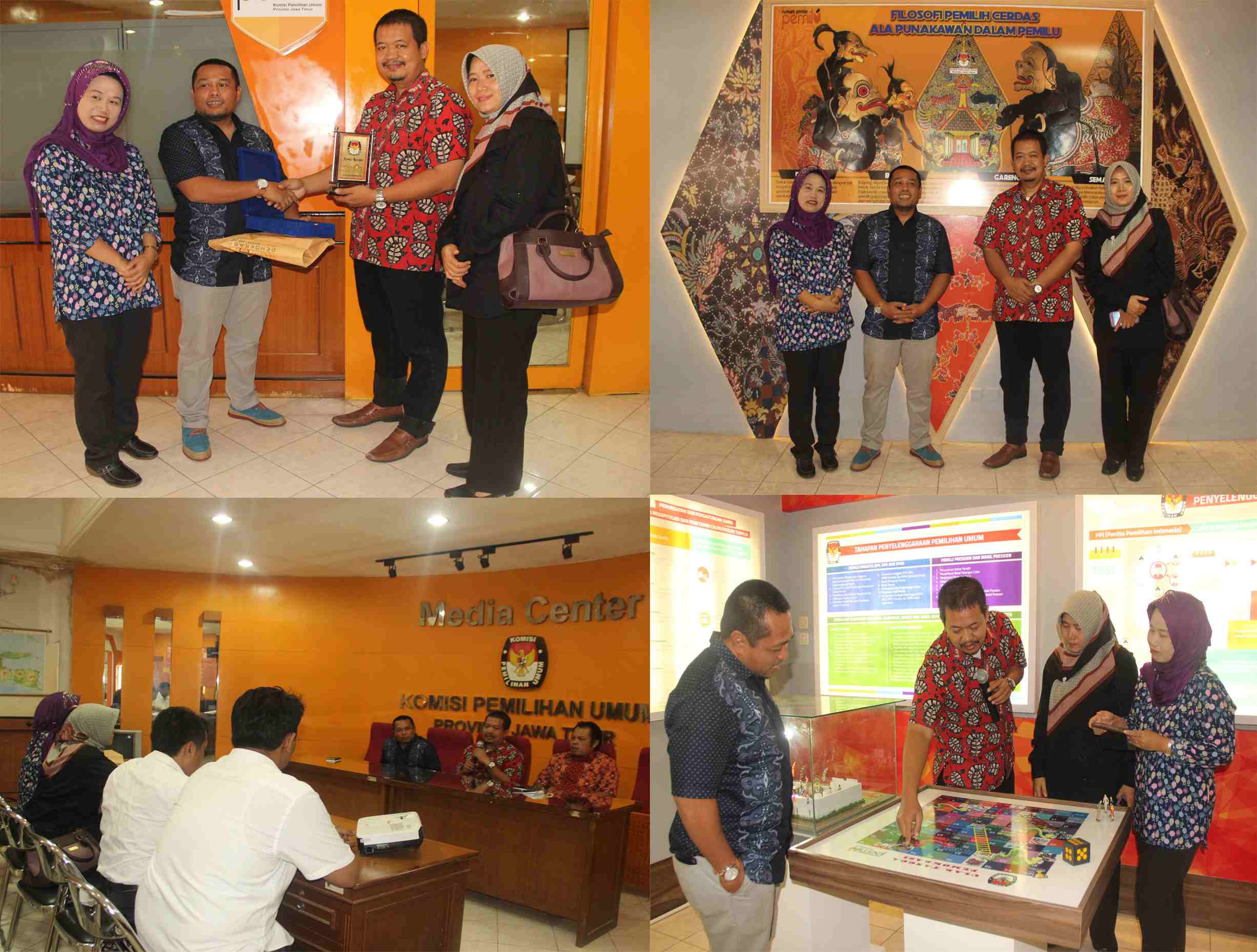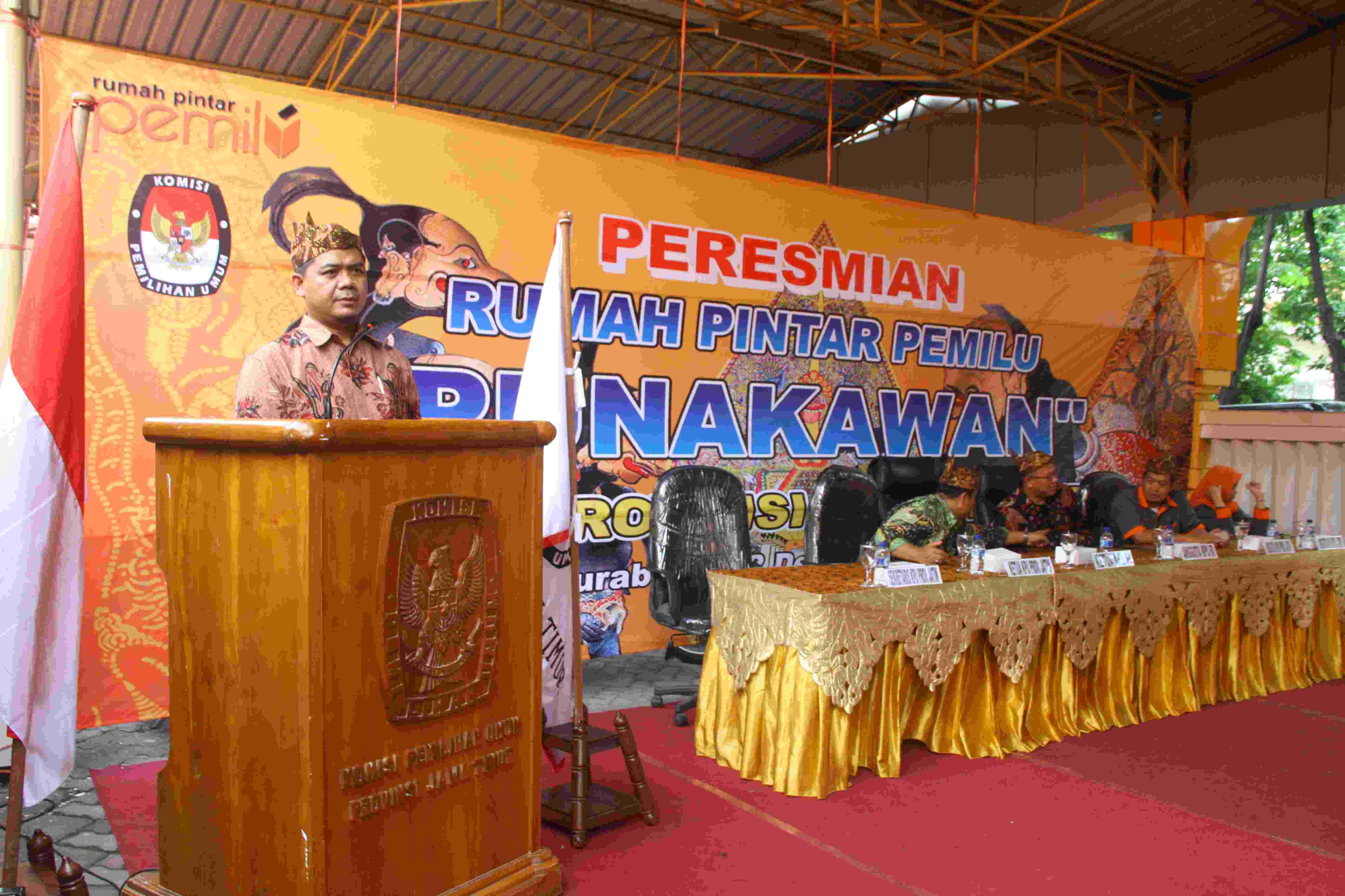Surabaya, jatim.kpu.go.id- Ketua Komisi Pemilihan Umum Republik Indonesia (KPU RI), Juri Ardiantoro secara langsung meresmikan Rumah Pintar Pemilu (RPP) PUNAKAWAN KPU Jatim hari ini, Kamis, tanggal 22 Desember 2016, pukul 11.00 WIB di halaman kantor KPU Jatim. Dalam sambutan peresmian RPP PUNAKAWAN, Ketua KPU RI mengingatkan fungsi RPP. Rumah Pintar Pemilu (RPP) merupakan program dari KPU RI. Di tahun 2016 ini ada 9 provinsi yang menjadi pilot project pembangunan RPP, dan salah satunya adalah KPU Jatim. Ketua KPU RI, Juri Ardiantoro saat memberikan sambutan dalam peresmian RPP PUNAKAWAN KPU Jatim mengungkapkan bahwa RPP KPU Jatim menjadi pilot project pembangunan RPP tahun 2016 yang terakhir diresmikan. Juri menuturkan pula pembangunan atau pengadaan RPP oleh KPU bukan tanpa alasan. “Alasan KPU harus mendirikan atau mengadakan Rumah Pintar Pemilu adalah pertama, KPU ingin pemilu menjadi isu yang tidak asing untuk masyarakat umum. Selama ini esensi dari pemilu belum dipahami dan diinternalisasi secara baik oleh masyarakat. Mereka sebatas mencoblos atau memilih,” ungkap Juri (22/12/2016). Menambahkan keterangannya, Juri menyampaikan seharusnya ‘memilih’ itu dimaknai lebih luas dari sekedar mencoblos. Untuk itu, pemahaman yang lebih dari masyarakat mengenai pemilu dibutuhkan. “Maka, setelah diresmikan, RPP harus diisi dengan informasi-informasi, data-data, pengetahuan, dan literatur mengenai pemilihan umum atau politik. Kalau KPU Jawa Timur tidak bisa menyediakan literatur secara memadai, bisa bekerja sama dengan banyak lembaga, banyak kampus, perpustakaan untuk membantu menyediakan literatur kepemiluan. Kalau itu juga susah, ya diwajibkan saja seluruh Komisioner dan Sekretaris KPU kabupaten/ kota dan provinsi menyumbangkan satu buku,” papar Ketua KPU RI. Kedua, alasan KPU mengadakan RPP adalah agar menjadi lokomotif atau semangat untuk memasarkan pemilu semakin inklusif, pemilu semakin dekat dengan kepentingan masyarakat. “Karena saat ini KPU menghadapi situasi yang tidak mengenakkan. Kalau melihat hasil survei, meski hal inipun secara keseluruhan tidak bisa menjustifikasi, namun secara indikator sederhana orang dalam pemilu dari tahun ke tahun tingkat partisipasi masyarakatnya semakin menurun. Secara sederhana, dapat Kita pahami mereka kecewa dengan produk pemilu dan pejabat publik melalui pemilu. Ini situasi yang lumrah, tapi untuk memperkuat demokrasi, Kita perlu meyakinkan masyarakat bahwa pemilu penting dalam menentukan nasib sebuah bangsa dan nasib Kita sebagai masyarakat yang ada pada strukttur pemerintahan,” jelas pria kelahiran Brebes ini. Dengan demikian, menurut Juri, RPP mestinya menjadi tempat untuk mendorong, menginisiasi berbagai macam kegiatan dan melibatkan masyarakat seluas-luasnya serta mendidik masyarakat untuk kembali terlibat dan menganggap penting dalam kehidupannya. “Intinya fungsi RPP adalah sebagai tempat belajar dan mendekatkan isu kepemiluan di masyarakat atau pemilu yang inklusif,” tegas Juri. Selain Juri, Komisioner KPU RI, Arief Budiman hadir dalam acara tersebut. Setelah menyanyikan lagu Indonesia Raya dan Mars Pemilu, acara dibuka dengan Tari Remo khas Jawa Timur. Hadir dalam acara ini 30 orang anggota Komunitas Relwan demokrasi, Divisi SDM dan Parmas dari 38 kabupaten/ kota di Jatim, perwakilan Osis dan guru SMA, serta berbagai Organisasi Kepemudaan serta Organisasi Masyarakat. Peresemian dirangkai juga dengan Deklarasi dari Komunitas Relawan Demokrasi yang terbentuknya difasilitasi KPU Jatim. Ketua KPU RI, Juri Ardiantoro bersama Arief Budiman meresmikan RPP PUNAKAWAN KPU Jatim dengan ditandai pemukulan kentongan, pemotongan rangkaian bunga, menandatangani prasasti peresmian, dan melakukan visitasi ke RPP PUNAKAWAN. (AACS)