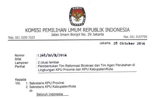 Surabaya, jatim.kpu.go.id- Komisi Pemilihan Umum Jawa Timur (KPU Jatim) dalam saat ini tengah menyiapkan Tim Agen Perubahan (Agent of Change). Tim Agen Perubahan ini sebagai role model pelaksanaan reformasi birokrasi untuk menggerakkan organisasi menuju perbaikan dan inovasi serta peningkatan pelayanan. Tim ini menjadi pelopor perubahan sekaligus dapat menjadi contoh atau panutan dalam berperilaku yang mencerminkan integritas dan kinerja yang tinggi di Lingkungan Sekretariat KPU Jatim. Kepala Bagian (Kabag) Program, Data, Organisasi dan SDM KPU Jatim, Aris Gatot Subagyo membenarkan bahwa KPU Jatim telah mempersiapkan Tim Agen Perubahan itu. “KPU Jatim telah mempersiapkan Tim Agen Perubahan tersebut sebagai salah satu upaya reformasi birokrasi dari area perubahan Ketatalaksanaan. Tim Agen Perubahan dibentuk karena untuk menyikapi keadaan dan dinamika dalam peningkatan pelayanan terhadap stakeholder di lingkungan Sekretariat KPU. Pada masing-masing Satuan Kerja (Satker) akan ada Tim Agen Perubahan ini,” tutur Aris (6/12/2016). Tim Perubahan ini melibatkan Komisioner dan Pegawai/ Staf di lingkungan Sekretariat KPU Jatim. KPU RI memberikan batasan waktu untuk pembentukan Tim Agen Perubahan ini. Pada Tahun 2016, Tim Agen Perubahan sudah harus dibentuk, dan akan mulai bekerja pada Tahun 2017. Menurut Aris tugas dari Tim Agen Perubahan KPU Jatim yakni, melakukan agenda perubahan untuk perbaikan pelayanan di lingkungan Sekretariat KPU Jatim pada jabatan struktural yang diemban, melakukan sosialisasi pada subbagian terkait, melakukan koordinasi pada subbagian terkait, melakukan presentasi kepada pejabat terkait tentang pelaksanaan agenda perubahan, menyusun laporan kegiatan agenda perubahan yang dilaksanakan, serta melaporkan kepada Sekretaris KPU Jatim. Pembentukan Tim Agen Perubahan ini menindaklanjuti Peraturan Menteri Pendayagunaan Aparatur Negara dan Reformasi Birokrasi Nomor 27 Tahun 2014 dan perintah KPU RI yang tertuang pada Surat KPU RI Nomor 136/SJ/X/2016 tentang Pembentukan Tim Reformasi Birokrasi dan Tim Agen Perubahan di Lingkungan KPU Provinsi dan KPU Kabupaten/ Kota. Dengan adanya Surat KPU RI Nomor 136/SJ/X/2016, KPU Jatim selain menyiapkan Tim Agen Perubahan, juga menyiapkan Tim Sekretariat Agen Perubahan dan Tim Reformasi Birokrasi. (AACS)