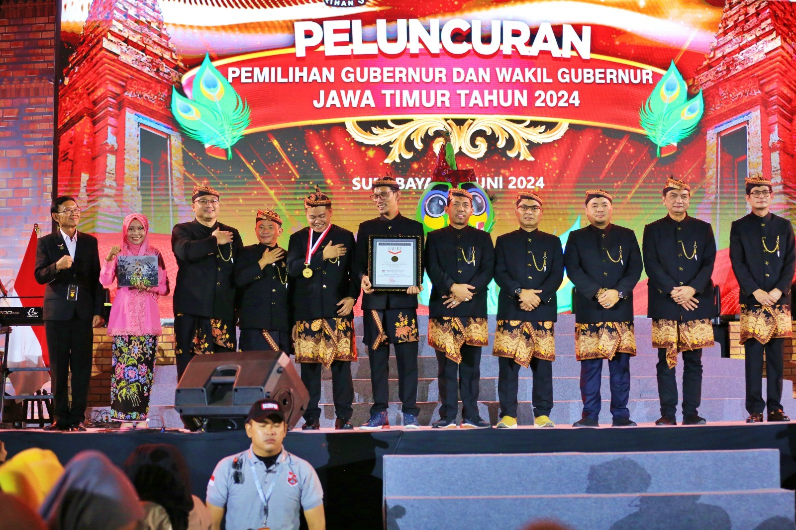Surabaya, jatim.kpu.go.id- Peluncuran Pemilihan Gubernur dan Wakil Gubernur Jatim Timur (Pilgub Jatim 2024) yang berlangsung malam ini, Selasa 4 Juni 2024 dimeriahkan oleh dua Artis idola anak muda. Gilga Sahid dan Happy Asmara sukses menghibur ribuan penonton yang hadir, membuat suasana 'ambyar' di tengah keramaian penonton. Saat tampil, keduanya sangat menyita antusiasme masyarakat, mulai dari kalangan anak muda dan juga para orang tua. Saat berbagai lagu dinyanyikan, para penonton tidak bisa menyembunyikan wajah kegembiraan. Terlebih ikut bernyanyi bersama, sambil melambaikan tangan. Anggota KPU Jatim Divisi Sosialisasi, Pendidikan Pemilih, dan Partisipasi Masyarakat mengaku senang dan puas dengan kehadiran masyarakat Jawa Timur. "Ini permulaan yang cukup baik, melihat antusiasme masyarakat malam ini semoga ini tanda yang baik untuk gelaran Pilgub Jatim 2024 mendatang," kata Salam. Ia menuturkan, sengaja peluncuran ini dikemas dengam konser musik yang disukai masyarakat, agar masyarakat gembira menyongsong Pilkada. "Tentu hal ini berangkat dari tagline yang kita usung, yaitu Pilgub Jatim Seneng Bareng," imbuhnya. Salah seorang penonton asal Sidoarjo mengaku senang bisa datang menyaksikan konser dari penyanyi idolanya. "Apalagi konser ini gratis, dan nilai plusnya kita jadi tahu banyak tentang tahapan Pemilu," katanya sambil tersenyum puas di tengah halaman parkiran Grand City Convex Surabaya.* (AFN)