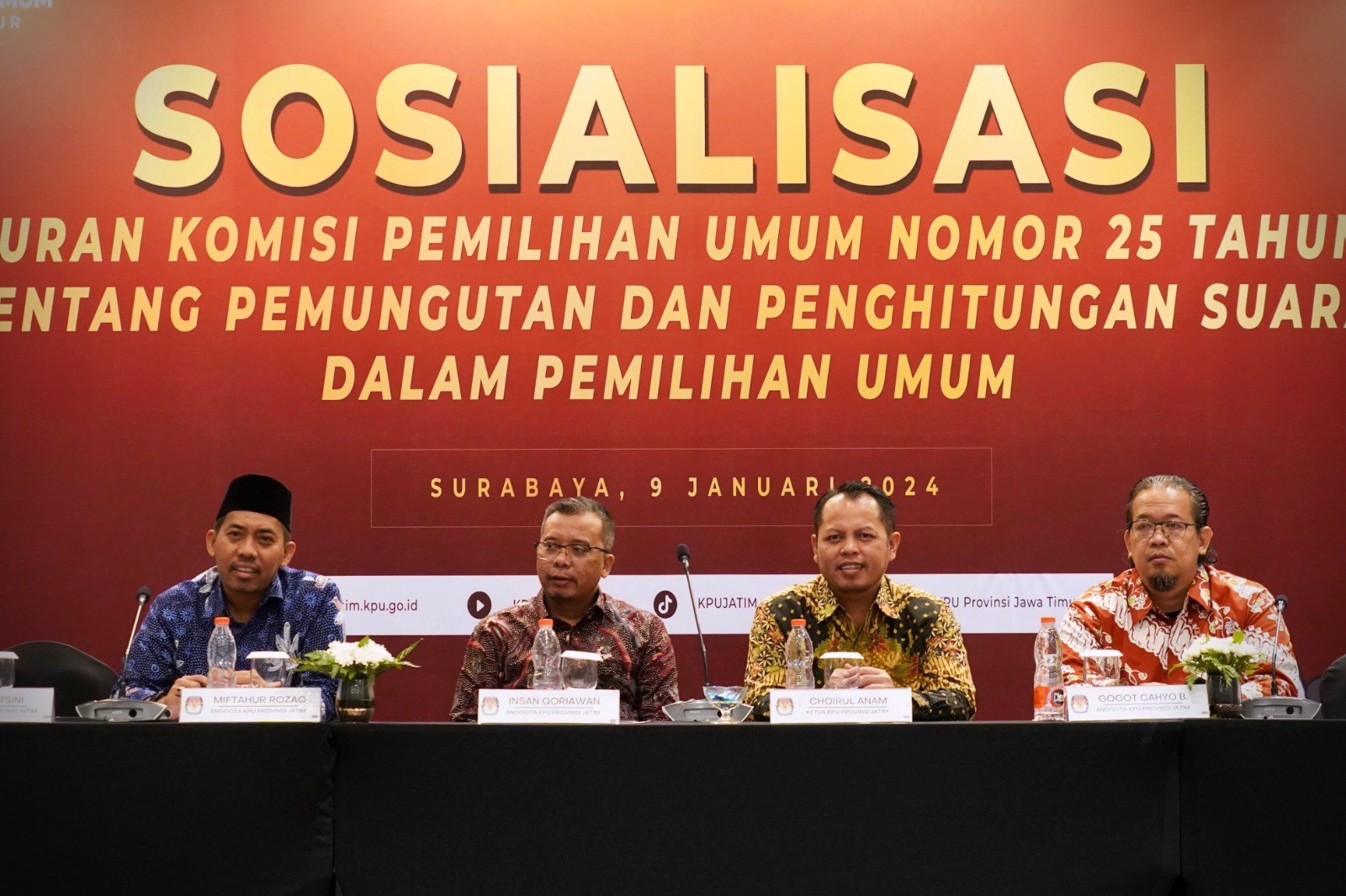Surabaya, jatim.kpu.go.id- Anggota Dewan Pertimbangan Presiden (Wantimpres) Soekarwo melakukan kunjungan kerja ke Komisi Pemilihan Umum Provinsi Jawa Timur (KPU Jatim) pada Selasa, 30 Januari 2024. Tiba sekitar pukul 09.30 WIB, rombongan diterima langsung oleh Ketua KPU Jatim Choirul Anam, bersama Anggota Gogot Cahyo Baskoro, Miftahur Rozaq, Insan Qoriawan, dan Nurul Amalia, serta Sekretaris Nanik Karsini di Aula Kantor KPU Jatim, Jl. Raya Tenggilis Nomor 1-3 Surabaya. Dalam kunjungannya tersebut, Soekarwo menjelaskan bahwa pihaknya bertugas memberikan second opinion kepada Presiden Joko Widodo. Yang dalam hal ini terkait dengan data primer dan sekunder yang penting dalam manajemen Pemilu. “KPU di jatim sudah digambarkan sangat kuat dan dianggap sebagai battle corp dalam melaksanakan Pemilu, sehingga banyak pelajaran dari jawa timur ini,” kata pria yang sering disapa Pakdhe Karwo tersebut. Untuk itu, dalam kesempatan kali ini, ia menyampaikan perlu mendapatkan bebera informasi. Diantaranya, yang disebutkan Pakdhe Karwo meliputi pandangan KPU terkait anggaran dan logistik, pengaruh cuaca terhadap pendistribusian logistik, pengelolaan cadangan logistik tak terpakai, peningkatan parmas, pandangan terkait kualitas dan efektifitas pengawasan, bentuk perlindungan kepada Kelompok Penyelenggara Pemungutan Suara (KPPS), mekanisme pengiriman dan pelaporan plano di Tempat Pemungutan Suara (TPS), penggunaan teknologi informasi, kelemahan sistem Perundang-undangan dan kebijakan pemerintah dalam pemilu, serta bentuk koordinasi dengan pemerintah dan aparat keamanan. Menanggapi hal tersebut, Choirul Anam menyampaikan roadmap persiapan KPU Jatim dalam menyelenggarakan Pemilu tahun 2024. “Pertama soal anggaran, untuk Pemilu 2024 tidak ada masalah. Bahkan untuk persiapan Pemliihan Gubernur dan Wakil Gubernur, KPU Jawa Timur sudah menandatangani Naskah Perjanjian Hibah daerah (NPHD) pada November 2023 sejumlah 845 Milliar,” terang Anam. Ia melanjutkan, terkait data pemilih, bahwa Jawa Timur mempunyai data pemilih terbesar kedua secara nasional, yaitu 31.402.838 jiwa. Sementara proses pemutakhiran data pemilih, Anam mengaku pihaknya juga melakukan pemetaan terhadap kategori pemilih disabilitas. “Hal ini dimaksudkan agar kawan-kawan KPPS lebih siap melakukan fasilitasi,” ujarnya. Selain akses difabel, KPU Jatim juga telah melakukan restrukturisasi TPS, hingga saat ini berjumlah 120.666. Ada pula TPS di lokasi khusus sejumlah 416. Selanjutnya, berkaitan dengan logistik, Anam menyampaikan pengelolaan logistik di Jawa Timur sudah cukup baik. “Contoh surat suara sejak tanggal 15 januari kemarin sudah clear, tinggal pemenuhan yang rusak. Tanggal 20 januari, kami juga sudah menyelesaikan sortir lipat. Dan target tanggal 31 besok semua logistik sudah dipacking, disetting di kotak suara untuk didistribusikan di kecamatan. Mengingat, semua proses setting berada di kabupaten/kota,” papar mantan Anggota KPU Surabaya tersebut. Sampai saat ini, lanjutnya, tidak ada laporan gudang rusak di Jawa Timur. Ditarget, mulai 8 februari, semua logistik sudah bergeser ke kecamatan. Kecuali, yang perlu mendapatkan perhatian khusus Kabupaten Sumenep karena kepulauan. Yang tak kalah penting juga disampaikan oleh Anam terkait KPPS. Saat ini kami memiliki jumlah sebanyak 844.662 orang. Kesemuanya sudah dilantik tanggal 5 januari dan telah dibimtek oleh Panitia Pemilihan Kecamatan. “Sebagai mitigasi atas kejadian saat Pemilu 2019, seluruh calon anggota KPPS harus sehat, tidak mempunyai penyakit bawaan, terdaftar di jaminan sosial ketenagakerjaa, serta adanya uang santunan jika terjadi insiden. Selain itu, KPU juga mengantisipasi dengan memperhatikan usia 55 tahun bagi KPPS,” tegas Anam. Saat proses di TPS, untuk mengurangi beban kerja, KPPS juga harus memahami teknologi informasi. Selain itu, saat ini pengisian formulir juga disedehanakan hanya cukup 1 salinan. Dan akan discan untuk di print menggunakan kertas khusus. Sementara, untuk partisipasi masyarakat sudah mencapai 83 persen. Namun KPU Jatim juga terrus melakukan upaya dengan melakukan sosialisasi dan pendidikan pemilih secara massif. “Kami sudah melaksanakan kirab pemilu yang diwarnai dengan berbagai kegiatan sosialisasi, optimalisasi media sosial dan website. Dan alhamdulillah, KPU jatim juga mempunyai hubungan yang baik dengan awak media,” pungkasnya.* (AFN/F.to AA)