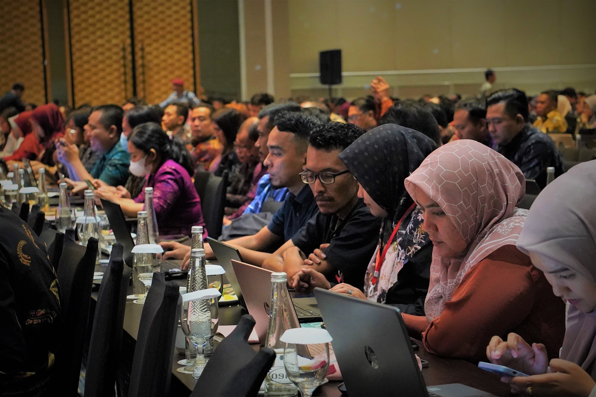 Surabaya, jatim.kpu.go.id- Istimewa, pembukaan Rapat Koordinasi Nasional dalam Rangka Penyusunan Kebutuhan dan Biaya Logistik Pemilu Tahun 2024 Gelombang III pada Sabtu, 24 Juni 2023 di Surabaya - Jawa Timur dihadiri oleh Gubernur Jawa Timur, Khofifah Indar Parawansa. Sebagai penanda dibukanya acara, Gubernur Jawa Timur bersama jajaran Anggota KPU, Yulianto Sudrajat, Betty Epsilon Idroos, Idham Holik serta Sekretaris Jenderal KPU, Bernad Dermawan Sutrisno memukul lumbung secara bersama-sama. Bukan tanpa alasan, dipilihnya lumbung sebagai penanda pembukaan acara, tak lain karena Jawa Timur merupakan Provinsi Lumbung Pangan Nasional. Gubernur Jawa Timur, Khofifah Indar Parawansa mengawali sambutannya memberikan apresiasi pada jajaran KPU Jatim yang cukup handal mendapatkan penugasan sebagai tuan rumas rapat koordinasi nasional. “KPU Jatim, Cak Choirul Anam beserta jajarannya ini luar biasa dan cukup handal untuk bisa mendapatkan penugasan-penugasan seperti ini. Saya juga sangat bahagia bila banyak forum-forum rapat koordinasi nasional dilaksanakan di Jawa Timur,” tuturnya. Ucapan selamat datang disampaikan pula oleh Gubernur Jawa Timur kepada seluruh peserta rakornas logistik gelombang III. “Seluruh Ketua KPU Provinsi beserta Divisi Perencanaan dan Logistik dari 14 provinsi, 171 Ketua, Divisi Perencanaan; Data dan Informasi serta Sekretaris KPU Kabupaten/Kota, semuanya selamat datang di Provinsi Jawa Timur, bumi Majapahit, bumi yang mengingatkan bhineka tunggal ika, bumi yang menegaskan pertama nusantara. Artinya kegiatan-kegiatan KPU yang dilaksanakan di Jawa Timur insyaallah akan mendapatkan kemudahan dari Allah,” paparnya. Berikutnya Menteri Sosial Indonesia periode 2014 – 2018 ini mengatakan jika apa yang dilakukan KPU sungguh tidak sederhana. ”Karena pertemuan ini saja menunjukkan bahwa pendekatan asimetris harus dilakukan KPU. Melakukan pendekatan di daerah Papua Pegunungan dengan di Jawa Timur, Jawa Tengah, Jawa Barat sudah pasti tidak sama tingkat kemampuannya, tingkat kesulitannya, dan tingkat kelamaannya bisa dijangkau. Tapi itu harus dilakukan oleh KPU seluruh Indonesia untuk membangun proses demokratisasi, yang bisa melahirkan pemimpin-pemimpin eksekutif dan legislatif,” jelasnya. Menanggapi sambutan Gubernur Jawa Timur, Yulianto Sudrajat selaku pengampu Divisi Perencanaan; Keuangan; Umum; Rumah Tangga dan Logistik.KPU menuturkan bila di tahun-tahun pemilu akan banyak merepotkan dan membutuhkan dukungan serta kerja sama dari pemerintah provinsi dan pemerintah kabupaten/kota. “Baik untuk gudang sebagai tempat penyimpanan logistik, pulang dan perginya logistik ke desa/kelurahan, dari TPS menuju kecamatan kembali, menuju kabupaten/kota, tentu dukungan pemerintah provinsi dan kabupaten/kota sangat kami butuhkan, karena KPU tidak bisa bekerja sendirian,” ujarnya. Yulianto pada kesempatan tersebut juga berharap pada Gubernur Jawa Timur ada dukungan hibah gedung untuk KPU Provinsi Jawa Timur untuk menunjang penyelenggaraan pemilu dan pemilihan. “Barangkali bisa dihibahkan gedung untuk kantor KPU Provinsi Jawa Timur Ibu. Yang tentu kami akan merawat dan membangunnya dengan megah. Hal tersebut tentu akan menjadi legasi Ibu Gubernur,” terangnya dengan penuh sopan. Berikutnya, kegiatan Rakornas Penyusunan Kebutuhan dan Biaya Logistik Pemilu 2024 Gelombang III yang digelar di Vasa Hotel, jalan. Mayjen HR. Muhammad Nomor 31 Surabaya, sejatinya sudah dimulai sejak Jumat, 23 Juni 2023, dan ditutup pada Senin, 26 Juni 2023. Pembukaan acara berlangsung di tengah-tengah acara karena padatnya tahapan Pemilu Tahun 2024 dan juga saling berhimpitan. Peserta rakornas terdiri dari Ketua beserta Divisi Perencanaan dan Logistik KPU Provinsi dari 14 provinsi, lalu 171 Ketua, Divisi Perencanaan; Data dan Informasi, serta Sekretaris KPU Kabupaten/Kota. Dari KPU Jatim turut mengikuti pembukaan yakni Ketua, Choirul Anam, Anggota, Nurul Amalia, Rochani, dan Insan Qoriawan, serta didampingi oleh Sekretaris, Nanik Karsini. Acara ini pun semakin meriah, dengan adanya penampilan tarian asli Jawa Timur yang apik yakni, Reog Ponorogo dan tari Topeng Malangan.*** (AA)