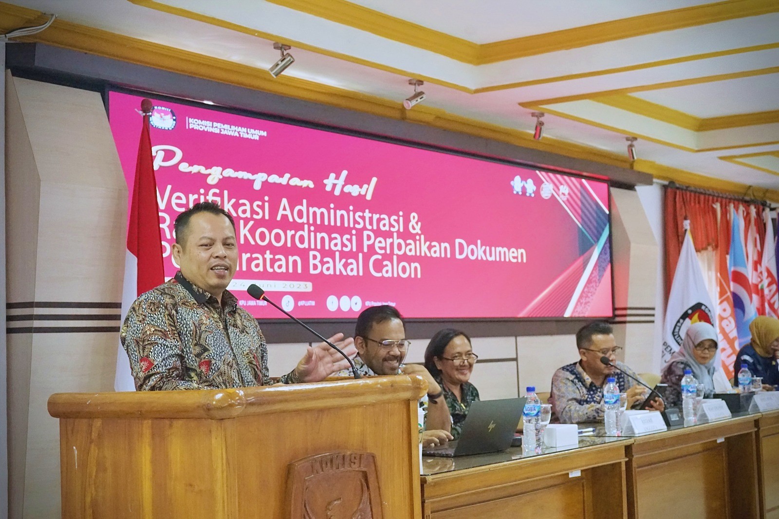 Buka Rapat Koordinasi Nasional Penyusunan Kebutuhan dan Biaya Logistik Pemilu 2024 Gelombang III, Gubernur Jawa Timur Bersama KPU Pukul Lumbung
