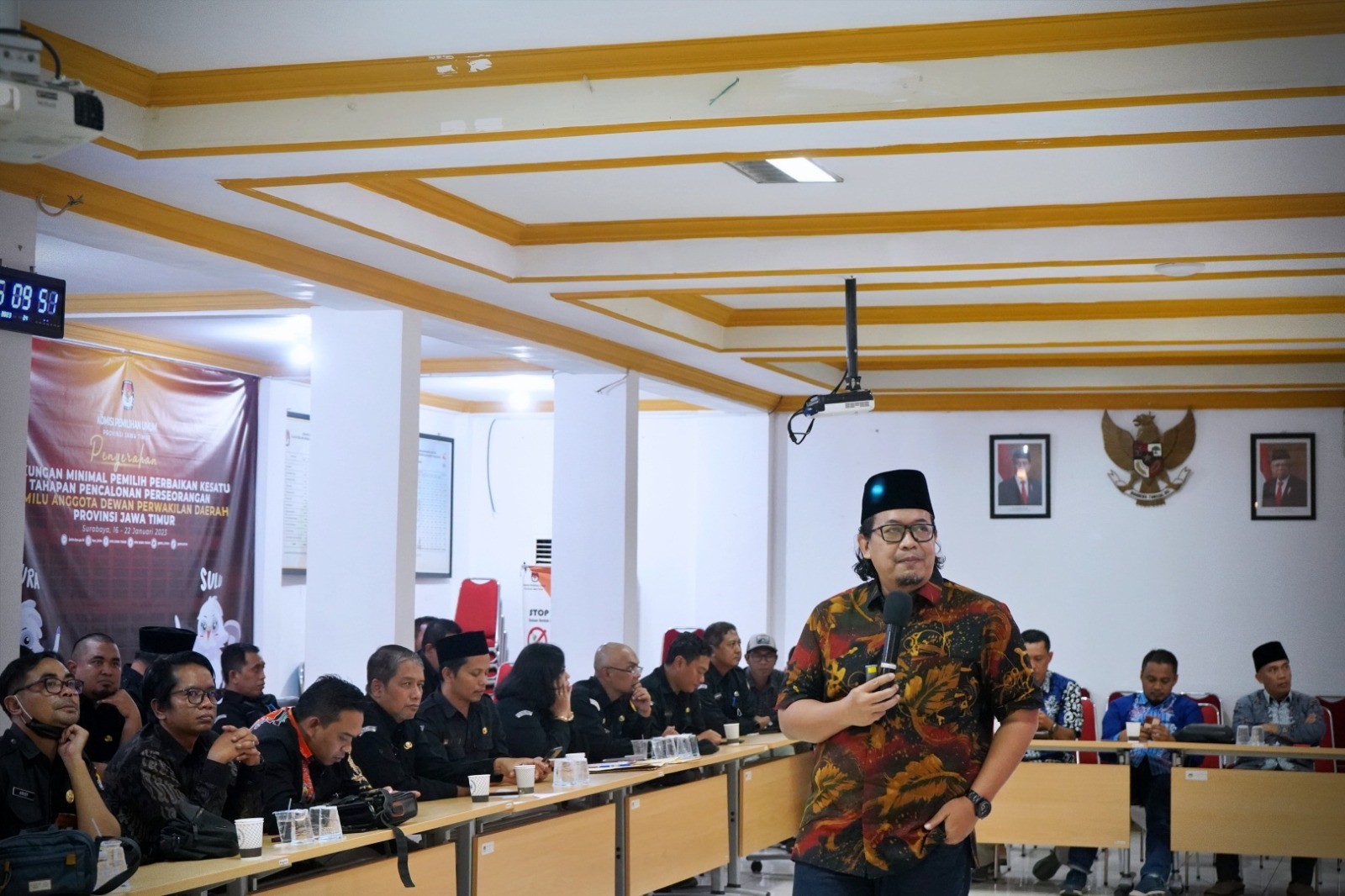 Surabaya, jatim.kpu.go.id- Sebanyak 6 dari 20 Bakal Calon Anggota (Bacalon) Anggota Dewan Perwakilan Daerah (DPD) dinyatakan Memenuhi Syarat pada tahapan verifikasi faktual dukungan pemilih kesatu. Status tersebut diketahui dari hasil rekapitulasi verifikasi faktual kesatu pencalonan perseorangan Anggota DPD pada Pemilu Tahun 2024 tingkat Provinsi Jawa Timur yang digelar oleh Komisi Pemilihan Umum Provinsi Jawa Timur (KPU Jatim) pada Rabu, 1 Maret 2023. Bertempat di Hotel Platinum, Jl. Tunjungan No. 11 - 21 Surabaya, rekapitulasi dimulai pada pukul 10.00 - 15.00 WIB. Dibuka secara resmi oleh Ketua KPU Jatim Choirul Anam beserta Anggota Insan Qoriawan, M. Arbayanto, Rochani, dan Nurul Amalia. Selanjutnya proses rekapitulasi dilakukan dengan membacakan Berita Acara hasil verifikasi faktual dukungan setiap Bacalon dari setiap Kabupaten/Kota oleh masing-masing KPU kabupaten/kota secara bergantian. Lima orang komisioner KPU Jatim yang hadir secara bergantian memimpin proses pembacaan sampai selesai. Sehingga, diketahui berapa jumlah sampel dukungan yang diverifikasi, jumlah dukungan yang Memenuhi Syarat (MS), Tidak Memenuhi Syarat (TMS), Jumlah proyeksi MS dan proyeksi sebaran dukungan yang MS. Anggota KPU Jatim Divisi Teknis Penyelenggaraan Insan Qoriawan mengatakan proses verifikasi faktual merupakan rangkaian tahapan yang harus dilalui sebelum Bacalon mendaftar sebagai Calon. "Ini proses yang harus ditempuh oleh Bacalon agar dapat mencalonkan diri pada pencalonan perseorangan Anggota DPD pada Pemilu 2024," terang Insan. "Artinya 6 Bacalon yang status dukungan dan sebaran dinyatakan MS (Memenuhi Syarat) pada tahapan verifikasi faktual kesatu ini tidak perlu melalukan perbaikan, tinggal menunggu penetapan pemenuhan syarat dukungan minimal pemilih dan sebaran pada bulan april," lanjut Insan. Sedangkan terhadap 14 Bacalon yang berstatus Tidak Memenuhi Syarat, KPU masih memberikan kesempatan untuk melalukan perbaikan pada masa perbaikan. "Bacalon yang berstatus TMS dapat melakukan perbaikan dukungan sesuai dengan waktu yang telah dijadwalkan," ujar mantan anggota KPU Pasuruan tersebut. Adapun masa penyerahan dukungan minimal pemilih perbaikan kedua sesuai dengan Peraturan KPU Nomor 10 Tahun 2022 tentang Pencalonan Perseorangan Anggota DPD, dilaksanakan selama 10 hari mulai tanggal 2 sampai dengan 11 Maret 2023 melalui Sistem Informasi Pencalonan (Silon). Untuk selanjutnya, dukungan perbaikan kedua akan dilakukan verifikasi administrasi pada 12 sampai 21 Maret 2023. Diteruskan dengan verifikasi faktual kedua pada 26 Maret sampai 8 April 2023. Untuk diketahui, enam Bacalon yang dinyatakan Memenuhi Syarat di antaranya AA La Nyalla Mahmud Mattalitti, AA Nawardi, Abdul Qadir Amir Hartanto, Agus Rahardjo, Evi Zainal Abidin, dan Kondang Kusumaning Ayu. Sedangkan empat belas lainnya yang Belum Memenuhi Syarat yaitu Aisyah Aleena, Adilla Azis, Ayub Khan, Bambang Harianto, Catur Rudi Utanto, Doddy Dwi Nugroho, Emilia Contessa, Erlyta Dwi A Siregar, Khoirul Arif Rohman, Kunjung Wahyudi, Lia Istifhama, Mohammad Trijanto, Narto SK Dentopuro, dan Siti Rafika Hardhiansari. Turut mengikuti proses rekapitulasi dari KPU Jatim yaitu Kasubbag Teknis Penyelenggaraan, sejumlah staf bagian terkait, serta 38 KPU Kabupaten/Kota, masing-masing hadir Divisi Teknis Penyelenggaraan dan Kepala Subbagian Teknis Penyelenggaraan Pemilu, Partisipasi, Hubungan Masyarakat, serta Operator Silon. Tampak hadir pula dari sejumlah pihak terkait. Diantaranya perwakilan dari Bawaslu Jatim Purnomo Satrio Pringgodigdo dan Muhammad Ikhwanudin Alfianto serta dua puluh Bakal Calon Anggota DPD atau yang mewakili.*** (AFN/Fto.Sekti)