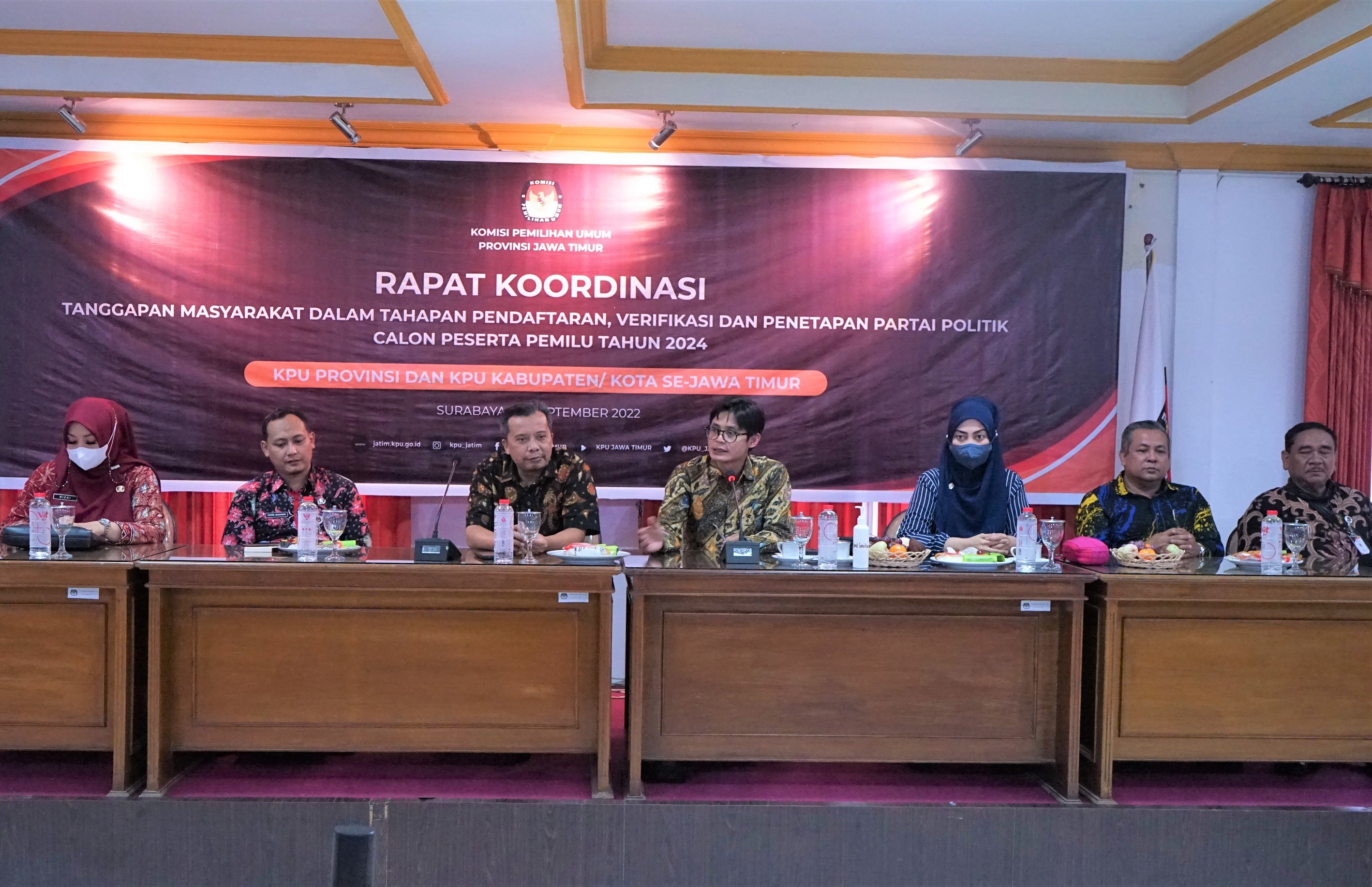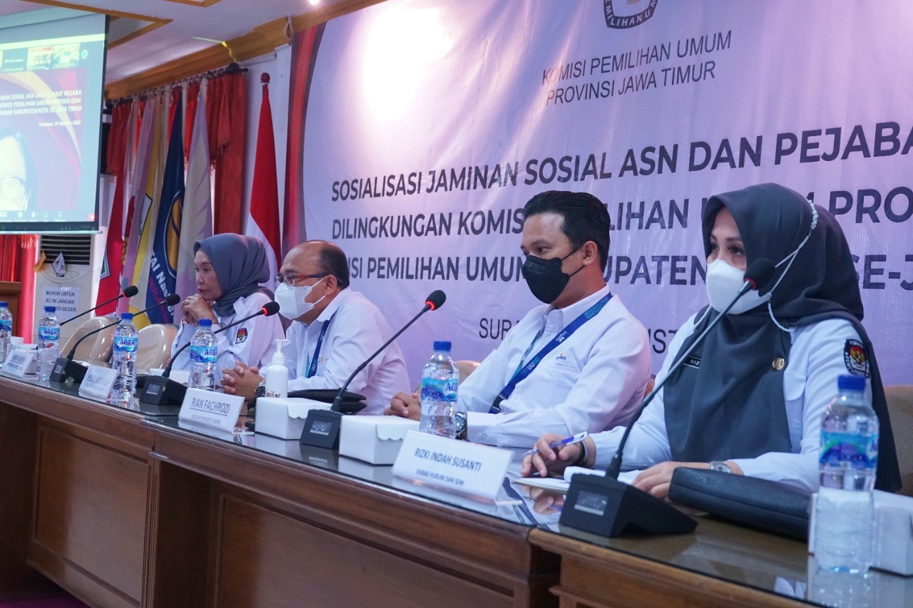 Surabaya, jatim.go.id- Komisi Pemilihan Umum Provinsi Jawa Timur (KPU Jatim) melaksanakan fasilitasi Konsultasi Anggaran Belanja Tambahan (ABT) dan Mekanisme Keterserapan Anggaran serta Sinkronisasi Kegiatan KPU Kabupaten/Kota dengan Provinsi Jatim. Kegiatan berlangsung pada Senin, 5 September 2022, pukul 12.00-14.30 WIB, di aula lantai 2 kantor KPU Jatim, jalan Raya Tenggilis Nomor 1-3, Surabaya. Forum ini membahas mengenai strategi penyerapan anggaran, penyetaraan persepsi di wilayah internal KPU Jatim. Selain itu, guna mendapatkan input dari KPU Kabupaten/Kota. Sekretaris KPU Jatim, Nanik Karsini menyampaikan beberapa hal dalam forum ini. Salah satunya mengenai prinsip penyerapan anggaran yang perlu diterapkan oleh KPU Kabupaten/Kota. “Gunakan anggaran sesuai dengan peraturan perundang-undangan dan lakukan secara efektif dan efisien,” jelas Nanik. Nanik menambahkan, “Dari acara ini, kami ingin mewadahi, karena tugasnya KPU Jatim adalah mengarahkan dan memonitor KPU Kabupaten/Kota”. Tujuan lain dari konsultasi ini adalah untuk mengakomodir KPU Kabupaten/Kota yang membutuhkan solusi terkait perencanaan anggaran. Nanik juga meminta dua hal yang perlu dilakukan oleh KPU Kabupaten/Kota agar selalu menjaga integritas 24 jam dan mengoptimalkan sumber daya manusia. “Kami ingin KPU Kabupaten/Kota dalam penyerapan anggaran agar sesuai dengan peraturan perundang-undangan,” tegasnya . Ia juga berharap agar KPU RI, Provinsi, dan Kabupaten/Kota melakukan sinkronisasi kegiatan serta penyediaan anggarannya yang disesuaikan juga dengan peraturan perundang-undangan. Untuk melakukan sinkronisasi, Ketua KPU Jatim, Choirul Anam meminta KPU Kabupaten/Kota dengan Provinsi Jatim untuk selalu aktif memantau perkembangan di grup, walau pun tidak termasuk tim teknis. Anggota KPU Jatim yang juga selaku Divisi Perencanaan dan Logistik, Miftahur Rozaq turut memberikan apresiasi kepada 38 KPU Kabupaten/Kota di Jawa Timur karena telah merespon cepat dan tanggap kepada Sekretaris dan Sub Bagian (Subbag) Perencanaan dalam proses revisi Bendahara Umum Negara (BUN). Turut hadir dalam kegiatan ini yakni Ketua KPU Jatim, Choirul Anam, Divisi Data dan Informasi, Nurul Amalia, Sekretaris, Nanik Karsini, Kabag Perencanaan; Data dan Informasi, Nurita Paramita, serta Kabag Keuangan; Umum dan Logistik, Suharto (Totok). Sementara peserta terdiri dari perwakilan 16 KPU Kabupaten/Kota di Jawa Timur. *** (Diva/Fto. AA)