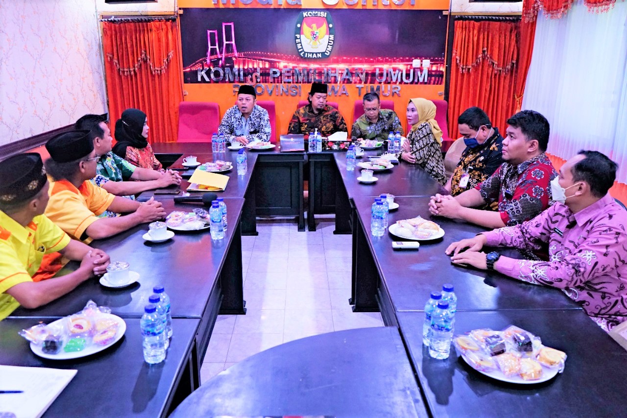 Surabaya, jatim.kpu.go.id- Jum’at (1/7), jam 10 pagi, Komisi Pemilihan Umum Provinsi Jawa Timur (KPU Jatim) menerima audiensi DPW Partai Swara Rakyat Indonesia (Parsindo) Provinsi Jawa Timur di ruang Media Center. Audiensi bertujuan mendapatkan bimbingan dan informasi terkait proses pendaftaran dan verifikasi partai politik. Ungkap Ketua DPW Parsindo Provinsi Jawa Timur, Abadi Manshur saat mengawali acara audiensi ini. “Parsindo ini partai baru. Saat ini Parsindo sudah ada di 34 Kabupaten/ Kota Jawa Timur. Kami sudah siap untuk tampil all-out. Kami mohon bimbingan pula apa saja yang dapat dipenuhi sebagai partai baru terkait dengan proses pendaftaran dan verifikasi partai politik,” katanya (1/7/2022). Menanggapi hal ini, Ketua KPU Jatim, Choirul Anam menyambut baik tujuan kedatangan dari DPW Parsindo Provinsi Jawa Timur ini. “Pada tahapan Pemilu Tahun 2024, guna memaksimalkan layanan, KPU Jatim menerapkan piket harian Senin sampai Minggu. Saya sarankan juga agar Parsindo di tingkatan kabupaten/ kota melakukan silaturahmi ke KPU Kabupaten/ Kota agar ada harmonisasi yang baik,” ujar Ketua KPU Jatim. Menyambung yang disampaikan Anam, Divisi Sosdiklih dan Parmas KPU Jatim, Gogot Cahyo Baskoro menyampaikan bila semakin banyak peserta pemilu menjadi semakin baik dalam Pemilu. “Prinsipnya KPU tidak menghambat dan mempersulit partai politik justru mendorong agar partai baru juga turut aktif, tanpa membeda-bedakan,” tegasnya. Ia juga menjelaskan, hingga saat ini Peraturan KPU dalam mengatur pelaksanaan Pemilu Tahun 2024 baru muncul Peraturan KPU Nomor 3 Tahun 2022 tentang Jadwal dan Tahapan Pemilu Tahun 2024. Nanti akan dijelaskan lebih lanjut oleh Divisi Teknis Penyelenggaraan KPU Jatim, Insan Qoriawan. Selanjutnya, Divisi Teknis Penyelenggaraan KPU Jatim, Insan Qoriawan memberikan penjelasan mengenai proses pendaftaran dan verifikasi partai politik. Ia mengungkapkan pengaturan terkait verifikasi partai politik ini secara spesifik terkait teknisnya belum ada. “Namun bila dilihat dalam draf Peraturan KPU perihal Verifikasi Partai Politik ini, proses pendaftaran parpol pada Pemilu Tahun 2019 dengan Pemilu Tahun 2024 berbeda. Dimana pendaftaran partai politik pada Pemilu Tahun 2024 nanti akan banyak berurusan di pusat, antara KPU RI dan pengurus parpol pusat. Hal inilah yang membedakan dengan Pemilu 2019 lalu dimana melibatkan KPU Provinsi dan Kabupaten/ Kota terkait verifikasi partai politik,” jelas Insan. Mengakhiri audiensi ini, Insan menuturkan untuk Parsindo pusat sudah meminta akun akses SIPOL ke KPU RI. Turut menyambut audiensi Ketua KPU Jatim, Choirul Anam, Anggota, Gogot Cahyo Baskoro, Insan Qoriawan, Rochani, dan Sekretaris, Nanik Karsini. dengan didampingi staf sekretariat bagian Tekmas.*** (AA/ Fto. Sekti)