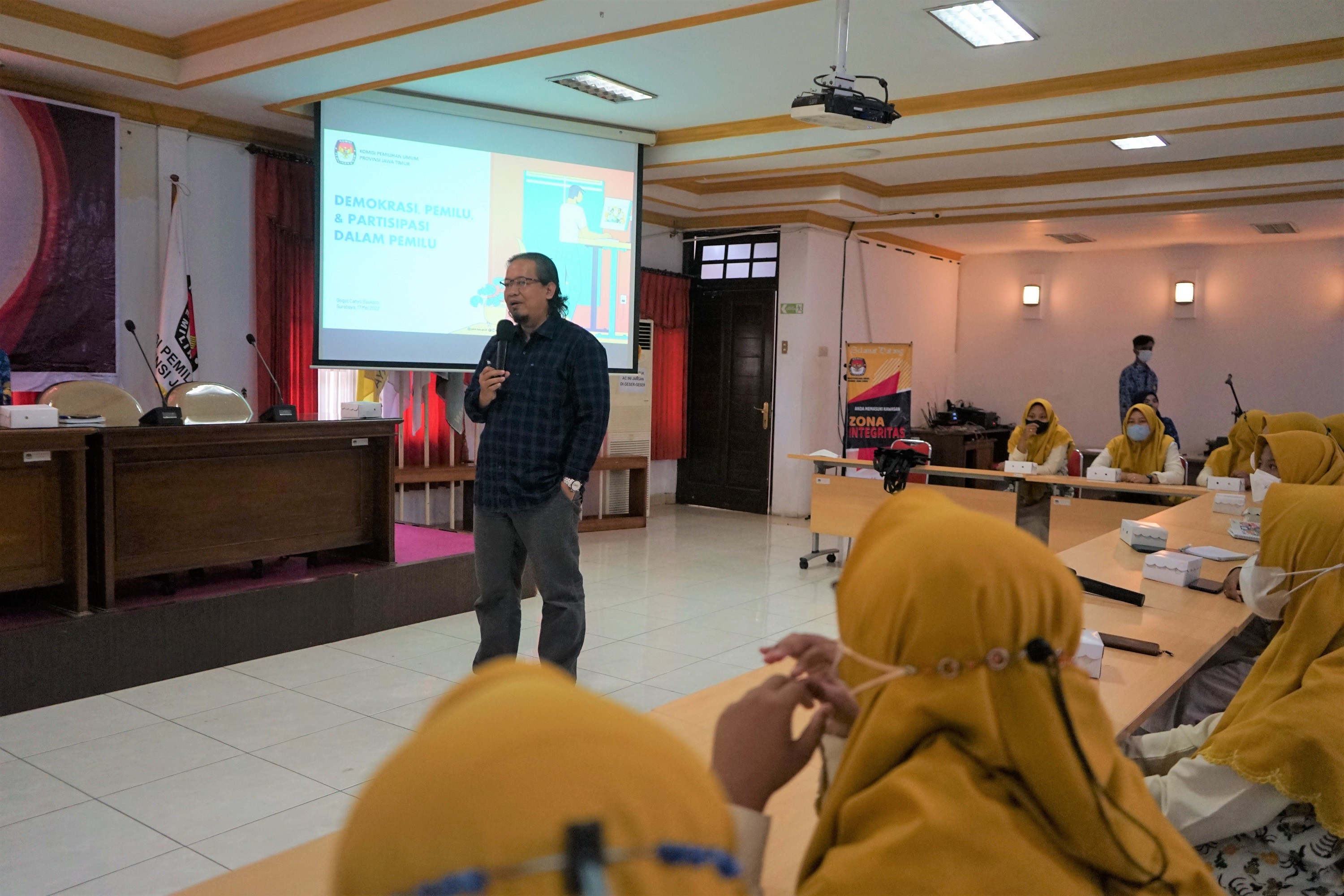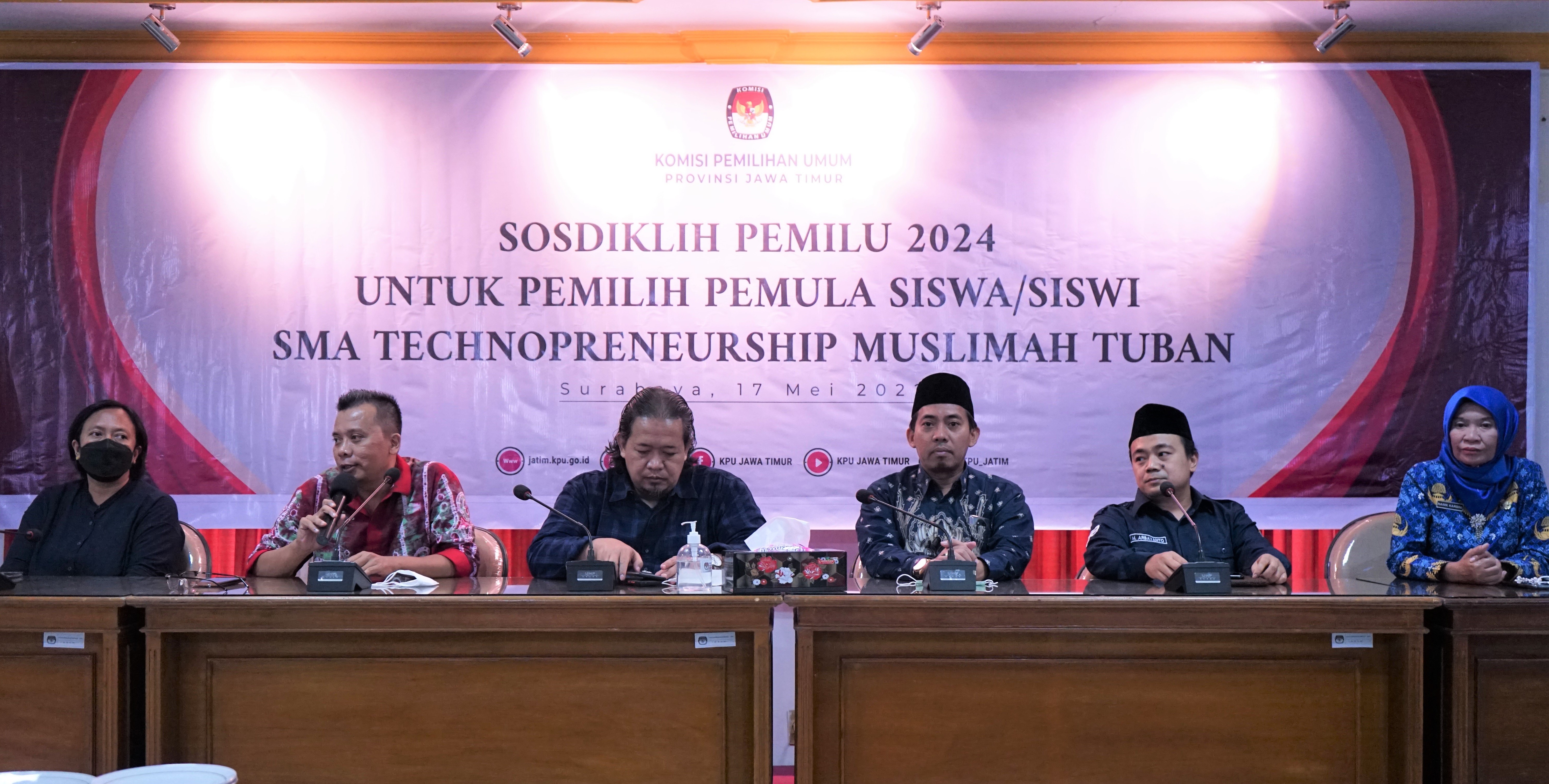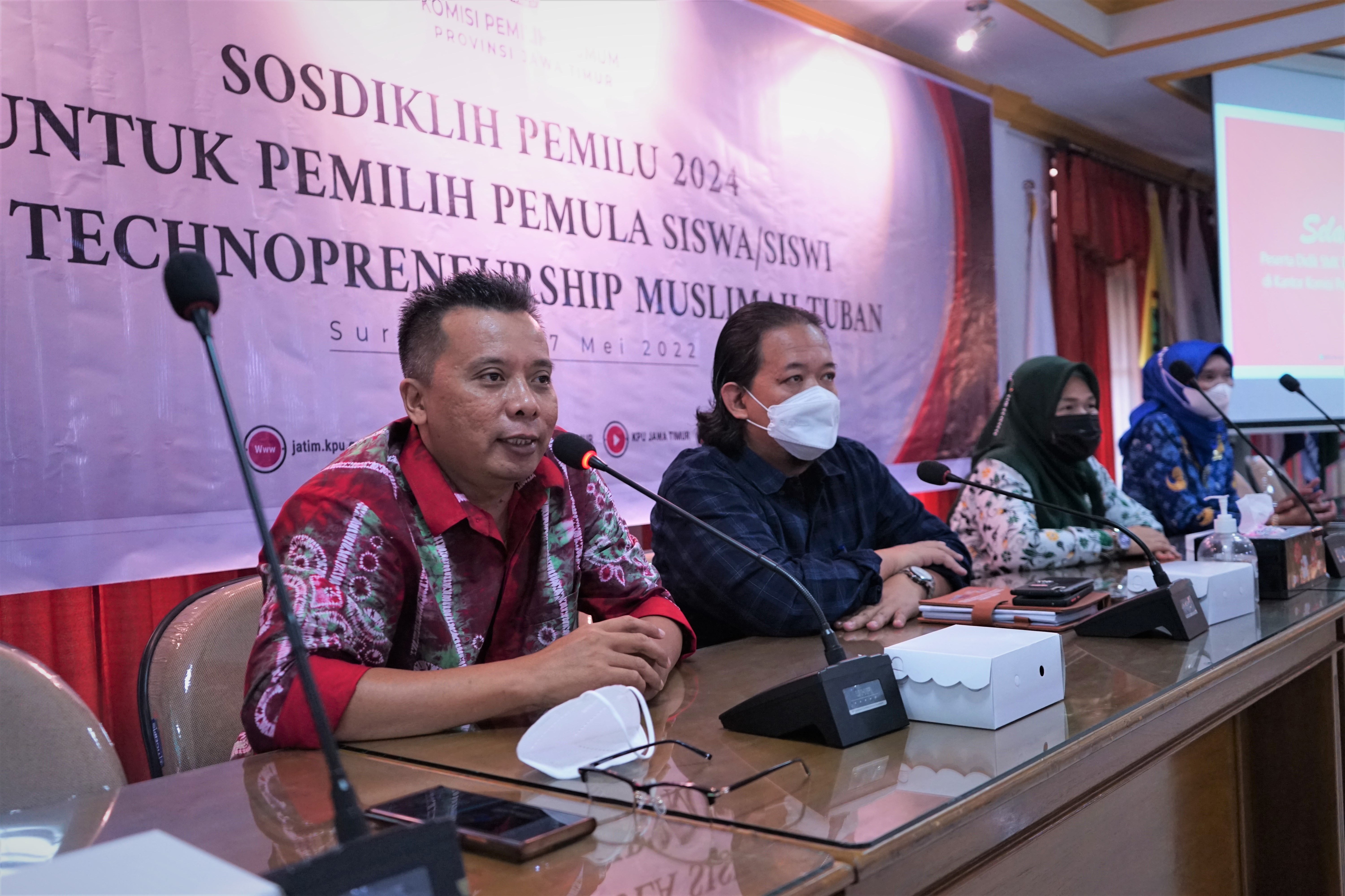 “Pada Pemilu dan Pemilihan tahun 2024, teman-teman sudah berusia 17 tahun, selain menjadi pemilih bisa terlibat sebagai penyelenggara seperti menjadi PPS atau juga bisa menjadi pemantau,” jelas Divisi Teknis Penyelenggaraan KPU Jatim ini.