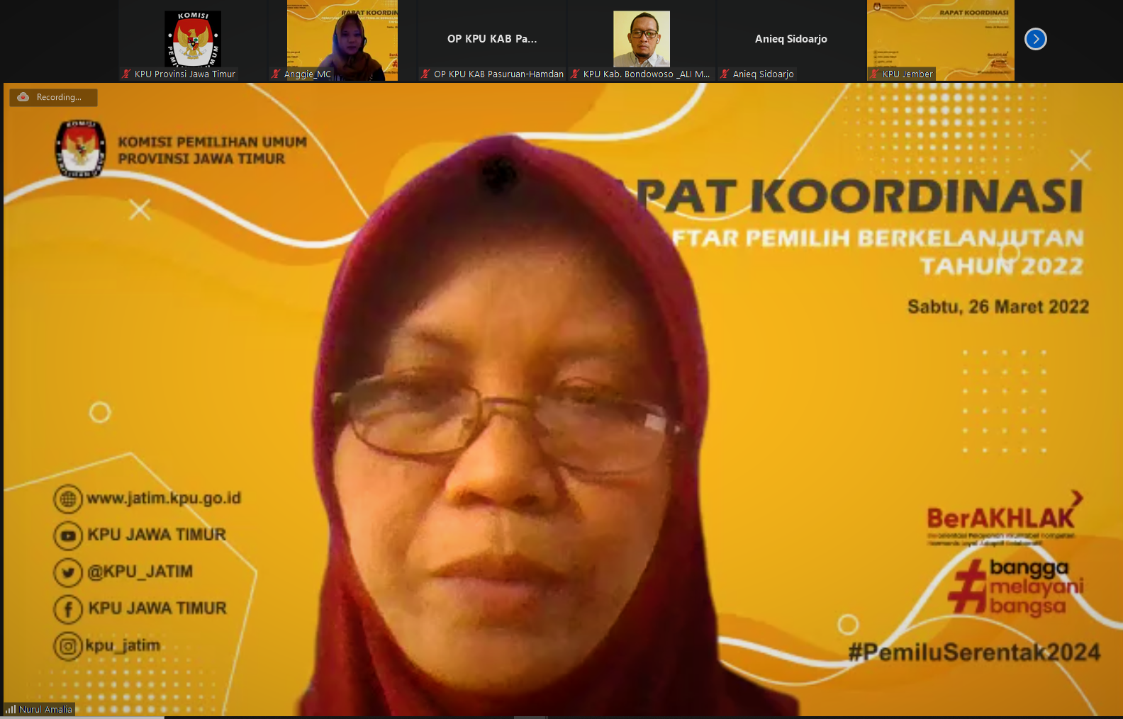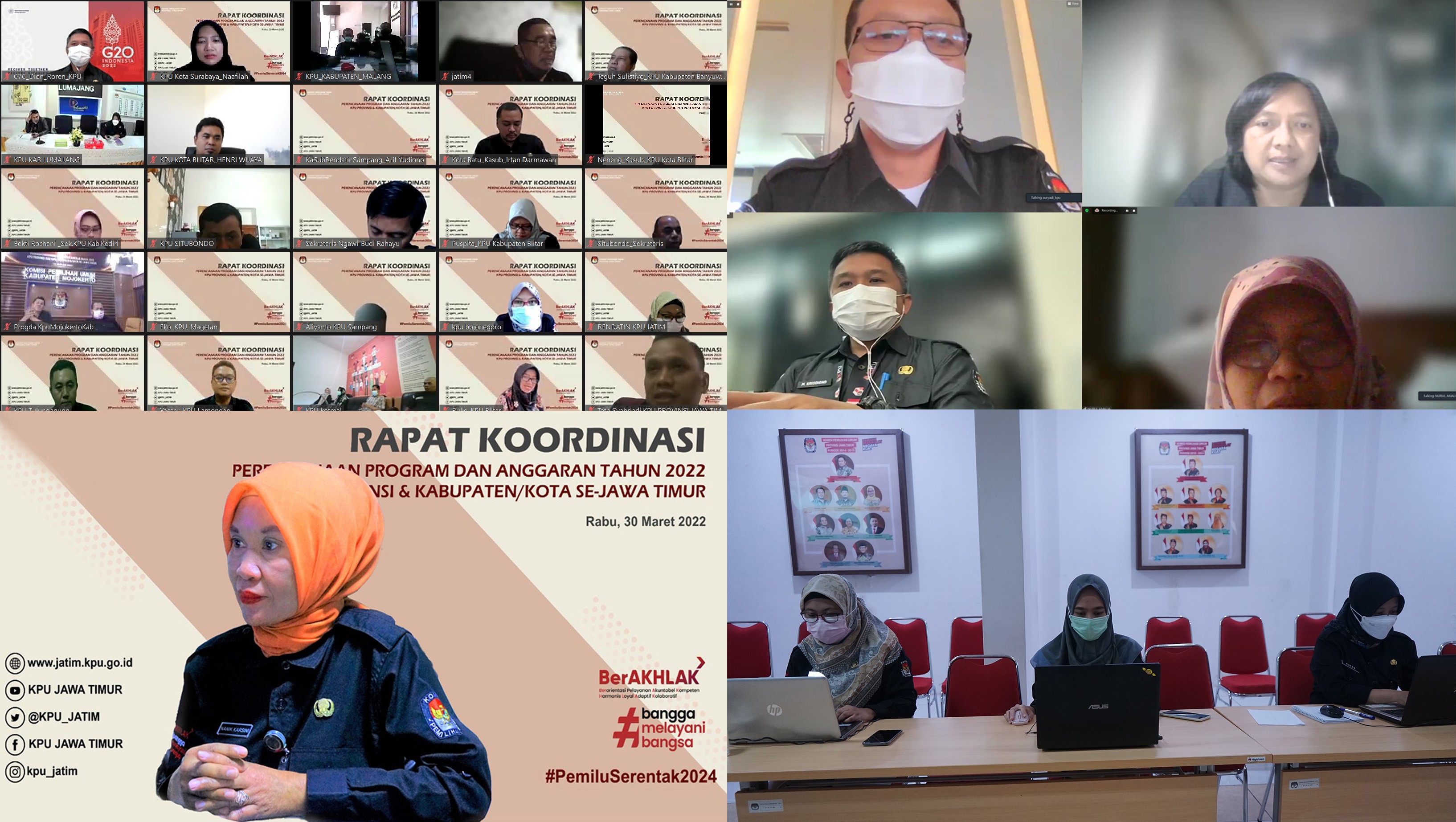 Surabaya, jatim.kpu.go.id- Pengelolaan program dan anggaran tahun 2022 di KPU Provinsi dan Kabupaten/ Kota se-Jawa Timur harus efektif, efisien dan akuntabel. Demikian ditekankan dalam setiap arahan pada Rakor Perencanaan Program dan Anggaran Tahun 2022 KPU Provinsi bersama KPU Kabupaten/ Kota se-Jawa Timur hari ini (Rabu, 30/3). Terlihat mengikuti dari KPU Jatim ada Plh. Ketua, Nurul Amalia, Divisi SDM dan Litbang, Rochani, Sekretaris, Nanik Karsini, Kabag Perencanaan; Data dan Informasi, Nurita Paramita, serta staf subbagian Perencanaan KPU Jatim. Sementara peserta rakor terdiri dari satu orang Divisi Perencanaan; Data dan Informasi, satu orang Sekretaris, serta satu orang Kasubbag Perencanaan; Data dan Informasi dari KPU Kabupaten/ Kota se-Jawa Timur. Acara dimulai dengan pembukaan, materi dari Biro Perencanaan dan Organisasi KPU RI, dan penutupan. Plh. Ketua KPU Jatim, Nurul Amalia menyampaikan tujuan dilaksanakan Rakor untuk melakukan koordinasi terkait dengan pengelolaan program dan anggaran Tahun 2022. Ia menegaskan pula bahwa KPU Provinsi dan Kabupaten/ Kota di Jawa Timur harus dapat mengelola dan memanfaatkan anggaran dengan baik. “Kita, KPU, saat ini memiliki anggaran yang terbatas. Sehingga KPU Provinsi dan Kabupaten/ Kota di Jawa Timur harus dapat mengelola dan memanfaatkan anggaran yang terbatas ini secara lebih efektif, efisien dan akuntabel. Pengelolaan anggaran yang efektif, efisien, akuntabel dan transparan saat ini oleh KPU Jatim juga disampaikan ke publik dalam bentuk infografis data serapan anggaran setiap bulan melalui website dan media sosial,” tutur Nurul saat membuka acara (30/3/2022). Mengimbuhkan, Sekretaris KPU Jatim, Nanik memberikan arahan agar pengelolaan program dan anggaran dapat efektif dan efisien, KPU Provinsi dan Kabupaten/ Kota harus memperhatikan beberapa hal. “Misalanya membatasi kegiatan konsinyering dan pengadaan snack rapat. Lalu, jumlah honorarium tim pelaksana kegiatan dan sekretariat tim pelaksana kegiatan yang dapat diberikan bagi Pejabat Negara, Pejabat Eselon I, Pejabat Eselon II, Pejabat Eselon III, Pejabat Eselon IV, Pelaksana, dan Pejabat fungsional pada tim dimaksud dalam satu tahun paling banyak dua honorarium,” tegasnya. Lebih lanjut pemateri dari Biro Perencanaan dan Organisasi KPU, Markus Krisdiono menerangkan dalam hal melakukan penghematan (prinsip efisien dan efektif), KPU beserta jajarannya ke bawah sebaiknya melakukan pertama, melakukan caping terhadap perjalanan dinas dalam rangka rapat koordinasi, rapat kerja, sosialisasi atau workshop dan diarahkan cukup melalui daring atau virtual, hal ini juga sebagai tindaklanjut mendukung Program Pemerintah dalam mencegah persebaran COVID-19. “Kedua, satuan biaya taksi perjalanan dinas dalam negeri menggunakan metode at cost (sesuai pengeluaran). Ketiga, tidak memberikan honorarium panitia yang sifat kegiatannya daring (online) dalam pelaksanaan kegiatan Seminar/ Rapat/ Sosialisasi/ Diseminasi/ Bimbingan Teknis/ Workshop/ Sarasehan/ Simposium/ Lokakarya/ FGD/ Pelatihan/ Kegiatan sejenisnya. Keempat, tidak memberikan honorarium panitia penyelenggara kegatan diklat yang sifat kegiatannya daring (online). Kelima, menghapus kegiatan Rapat Dalam Kantor (RDK) di luar jam kerja kantor, dan lain- lain sebagai dalam materi paparan ini,” papar pria asal Jombang, Jawa Timur ini. Masih senada, Kepala Biro Perencanaan dan Organisasi KPU, Suryadi serta Divisi SDM dan Litbang KPU Jatim, Rochani sependapat bahwa meskipun dengan anggaran terbatas dan berada pada baseline, hal ini jangan sampai menurunkan kualitas kinerja KPU dan jajarannya. Namun tetap meningkatkan kinerja KPU sehingga efisiensi dan efektivitas program dan anggaran tercapai. Rakor melalui media dalam jaringan ini dimulai dari pukul 10.00, dan diakhiri sekitar pukul 12.00 WIB. (AA)
