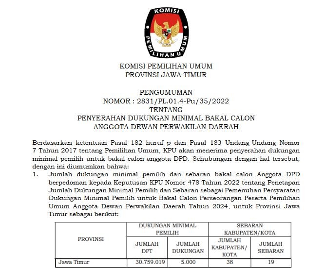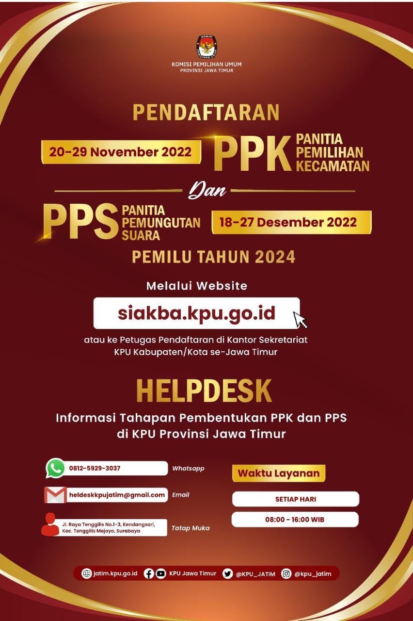 Bagi kalian di wilayah Jawa Timur, informasi lebih lanjut dapat melalui Helpdesk KPU Provinsi Jawa Timur atau Helpdesk KPU Kabupaten/Kota se-Jawa Timur.
