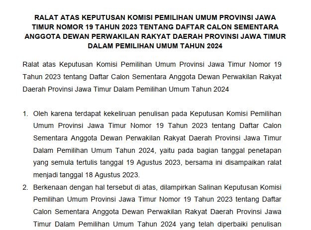 Berikut disampaikan Pengumuman Peserta yang Dinyatakan Lulus Seleksi Tenaga Administrasi dan Jagat Saksana Sekretariat KPU Provinsi Jawa Timur dan KPU Kabupaten/Kota di Jawa Timur Tahun 2023 Unduh di SIni