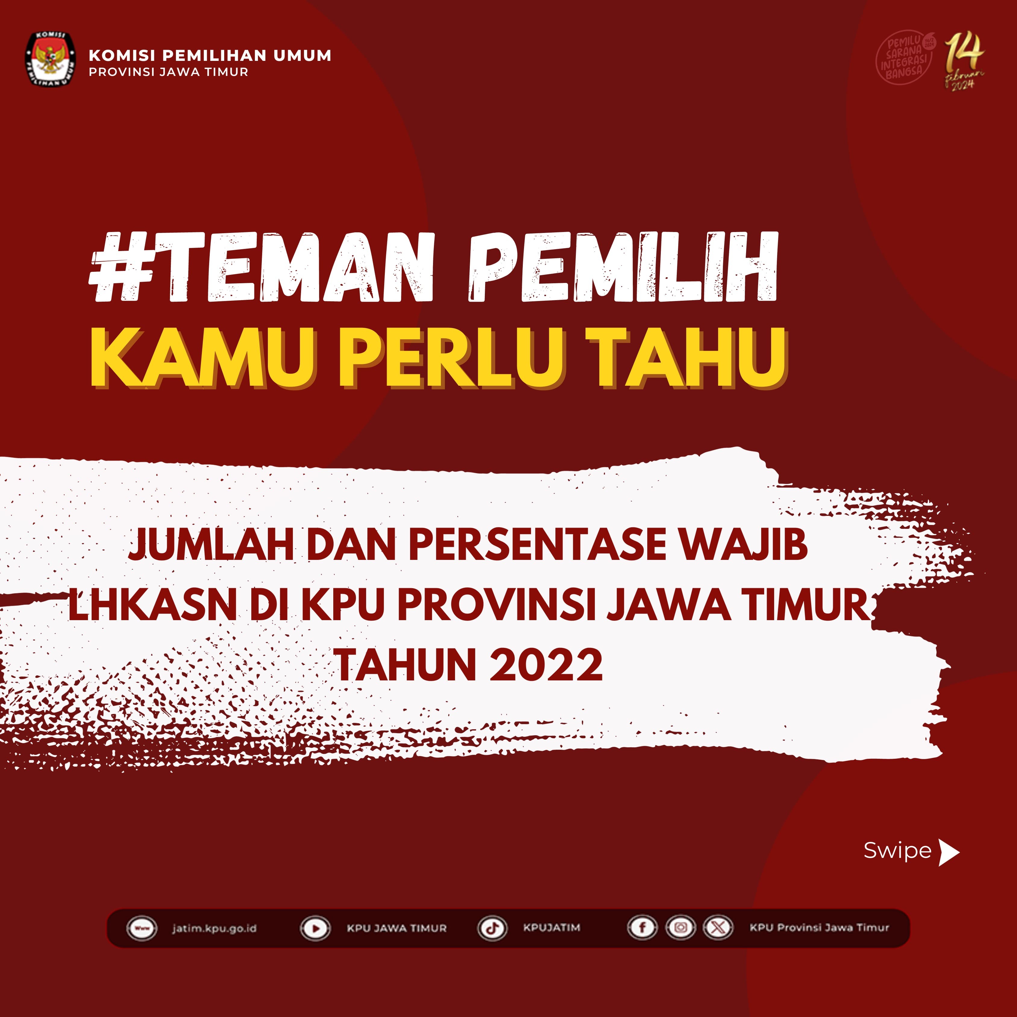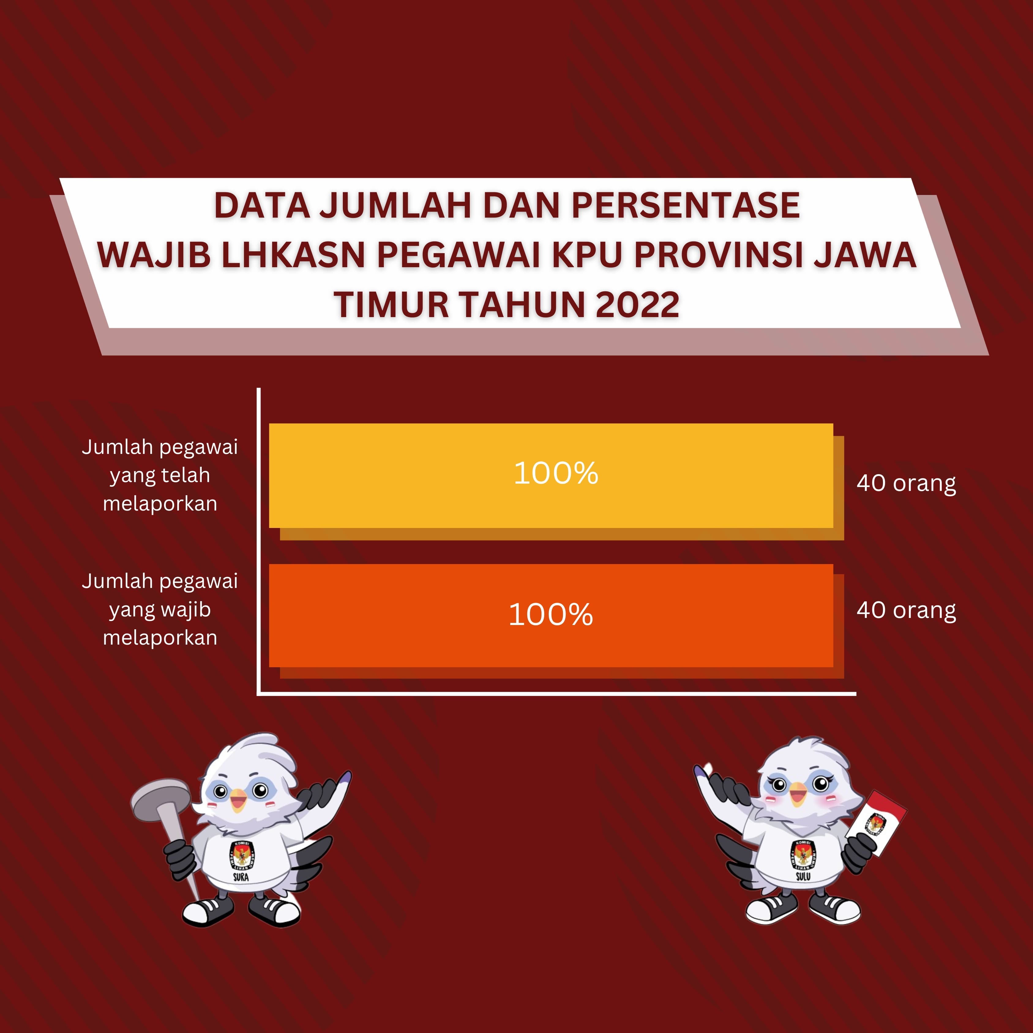 Hai #TemanPemilih.. Jumlah dan Persentase Wajib menyampaikan Laporan Harta Kekayaan Aparatur Sipil Negara (LHKASN) di Sekretariat KPU Provinsi Jawa Timur sebagaimana di bawah ini: