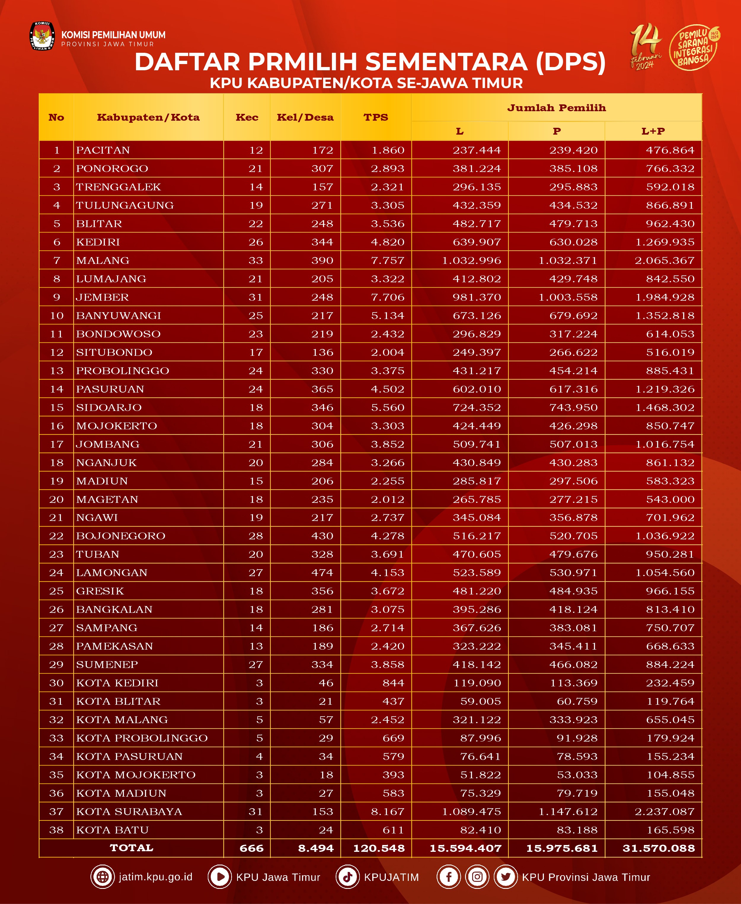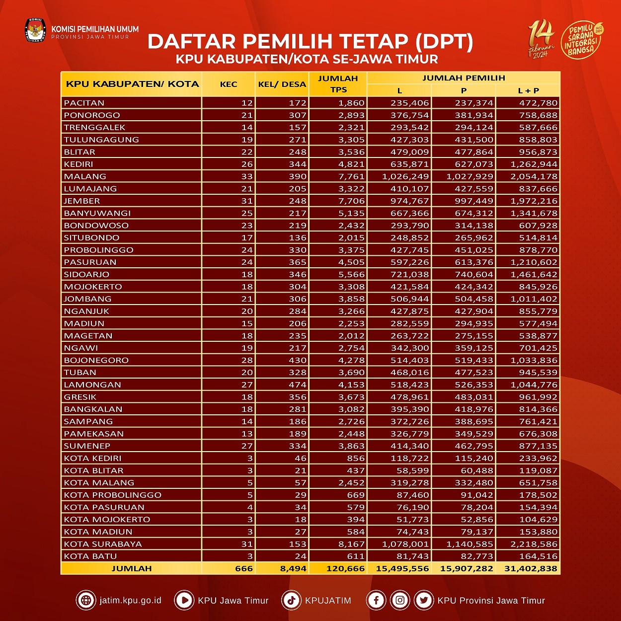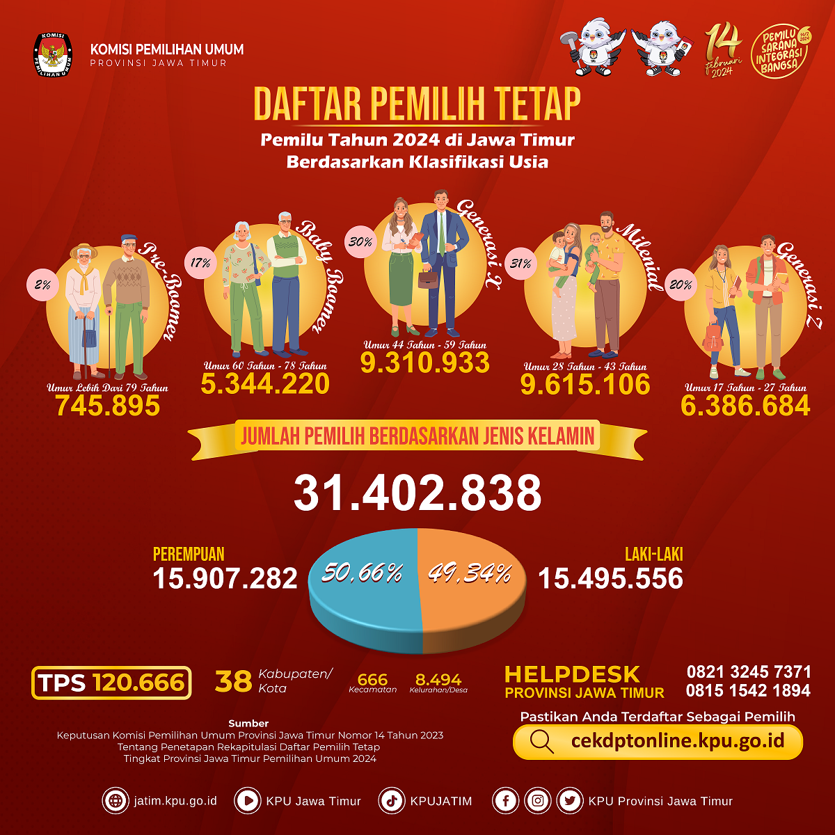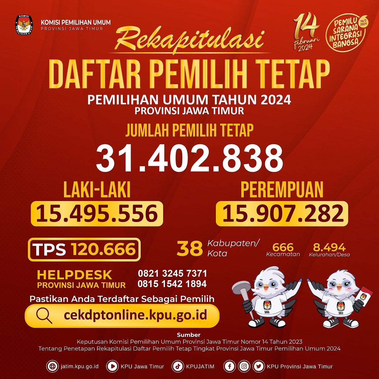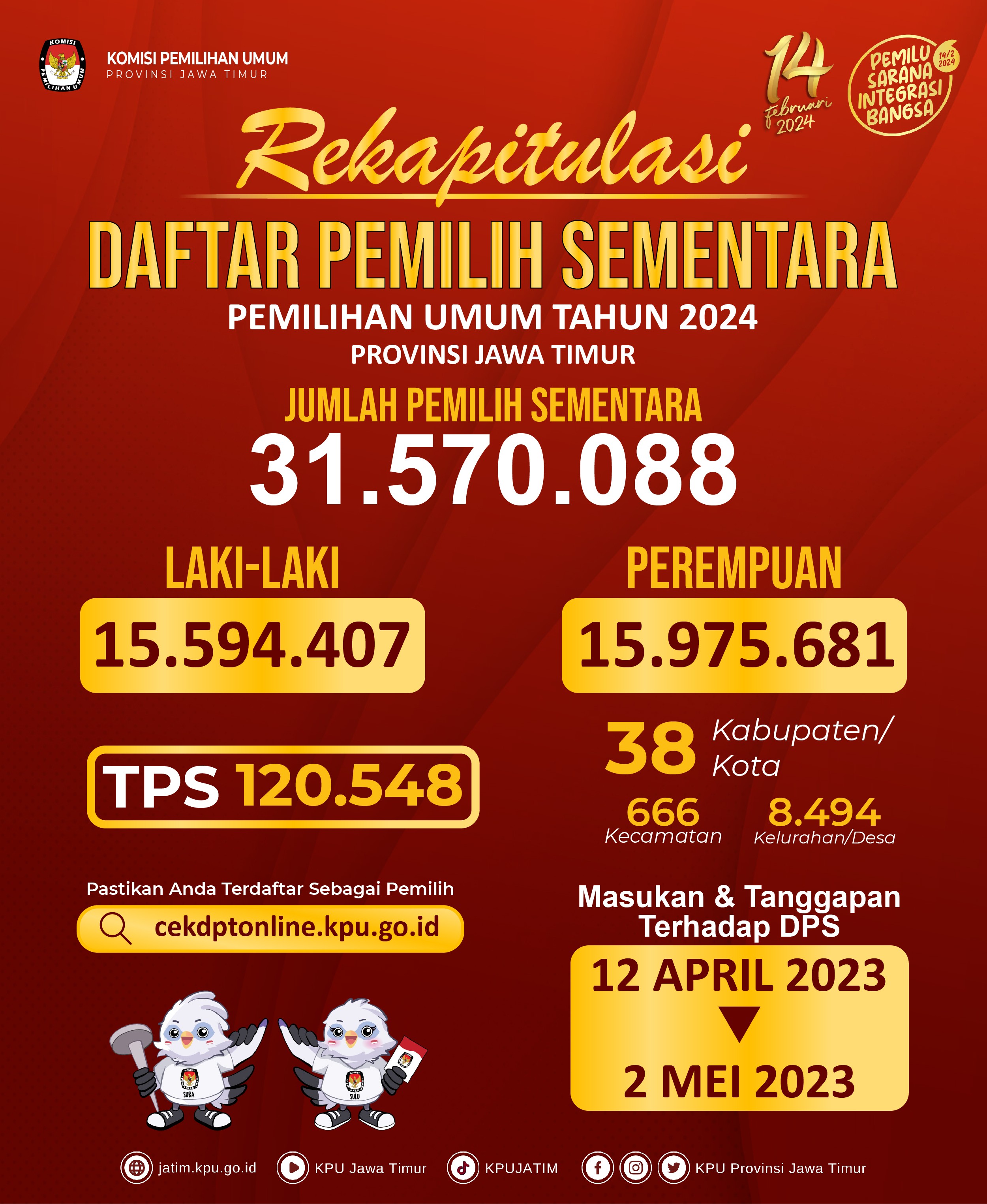 #TemanPemilih, yuk cek informasi hasil Rekapitulasi Daftar Pemilih Tetap (DPT) Pemilu Tahun 2024 di bawah ini: