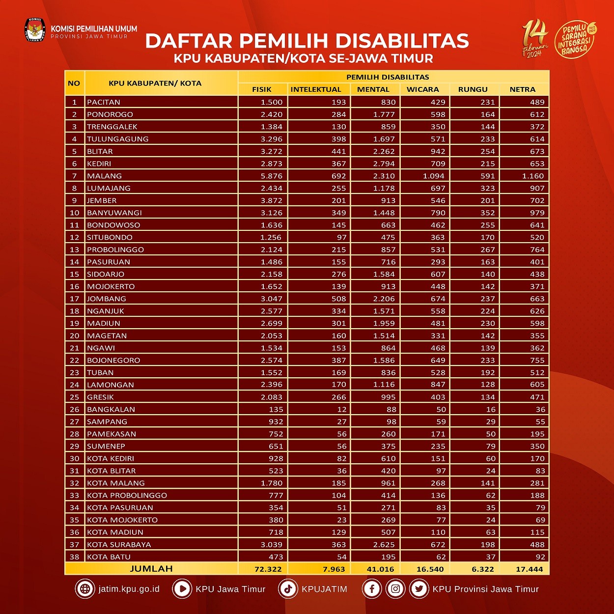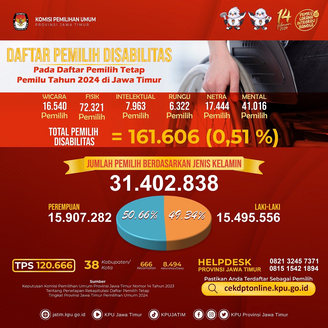 #TemanPemilih, yuk cek informasi hasil Rekapitulasi Pemilih Disabilitas Daftar Pemilih Tetap (DPT) Pemilu Tahun 2024 di bawah ini: