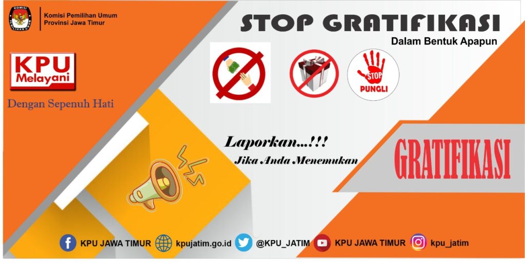 Pelaporan Gratifikasi ke KPU Provinsi Jawa Timur silahkan disampaikan pada kanal ini https://bit.ly/LapTerimaTolakGratifikasi
