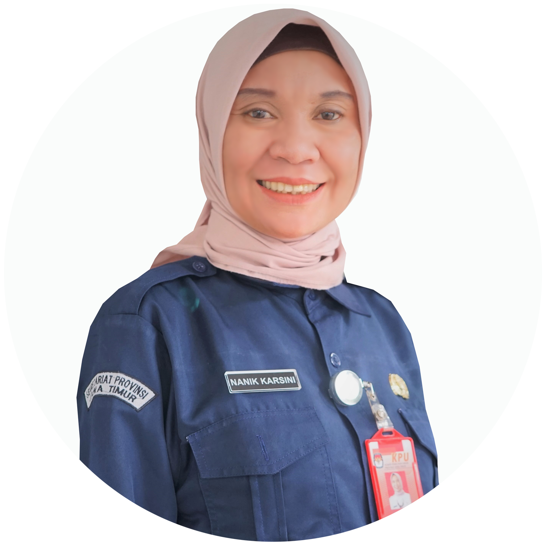 Dunia penyelenggaraan pemilu menjadi bagian tak terpisahkan bagi sosok Nanik Karsini. Selama lebih dari 20 tahun perempuan dua anak ini telah malang melintang dalam meniti karir sebagai Aparatur Sipil Negara (ASN) di lingkungan Sekretariat KPU, sebelum akhirnya kini menduduki jabatan Sekretaris KPU Provinsi Jawa Timur. Karir panjang perempuan kelahiran Magetan 1 Juli 1967 cukup lengkap. Berbagai jabatan dan posisi pernah dijalani mulai dari KPU RI, KPU Kabupaten hingga sekarang di KPU Provinsi. Sehingga kemampuan teknis penyelenggaraan pemilu dan tata kelola birokrasi. Selengkapnya Klik di Sini